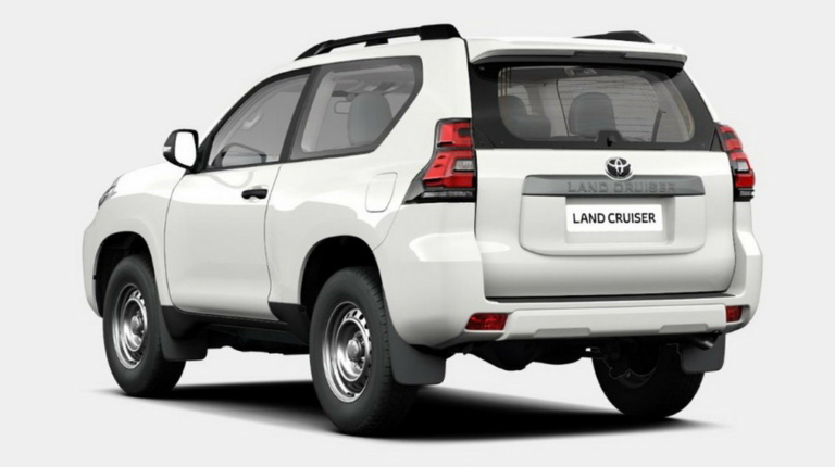 Toyota Land Cruiser Prado Utility обладает всего тремя дверьми, поэтому он значительно короче оригинальной модели (хотя есть и 5-дверный вариант). Кроме того, машина обута в самые обычные стальные колеса.