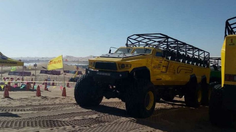 Китайський позашляховик досягає в довжину колосальні 8,8 м і не має даху – тільки каркас для навісу. Hubei Haojing HJ ATV6 пересувається на шести колесах, взутих в 1,4-метрові шини, що дає змогу використовувати його у важкодоступних місцях, зокрема в пустелях. Під капотом встановлено 8,9-літровий дизель Cummins потужністю 260 к.с. і 1550 Нм крутильного моменту. Пасажиромісткість цього позашляхового автобуса становить 23 людини без урахування водія.