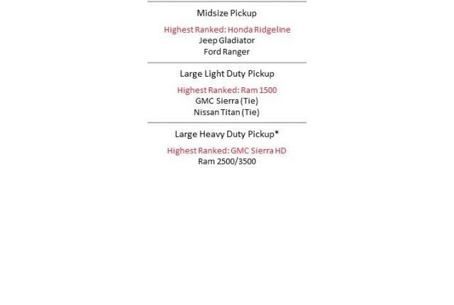 - повнорозмірний пікап – Ram 1500, GMC Sierra/Nissan Titan;