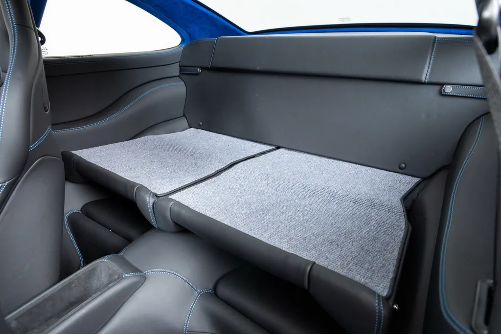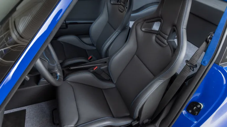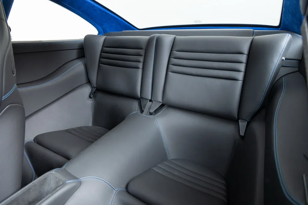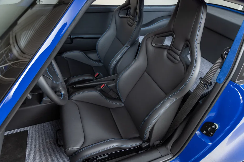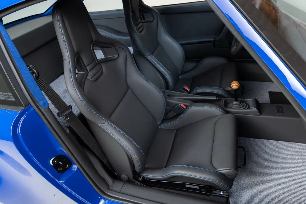 Дизайн інтер’єру відповідає найкращим стандартам якості. Спереду встановлені спортивні крісла Recaro Sportster CS з чорним шкіряним оздобленням та контрастним синім рядком. Ця ж комбінація кольорів та матеріалів використовується для оформлення дверних панелей, керма та панелі приладів. Стеля та стійки кузова прикрасили яскраво-синьою алькантарою.