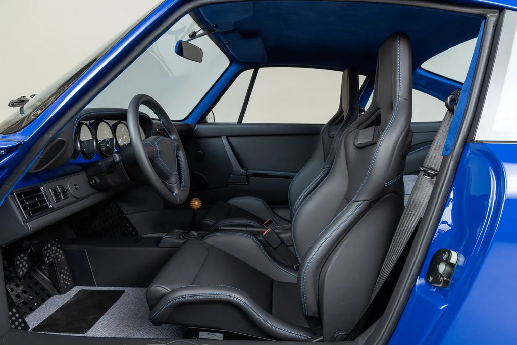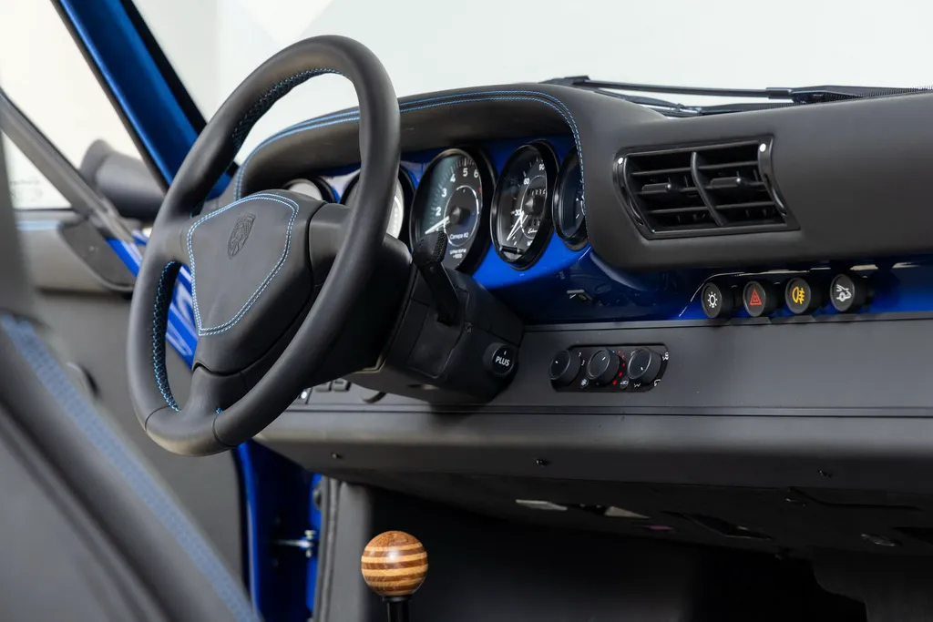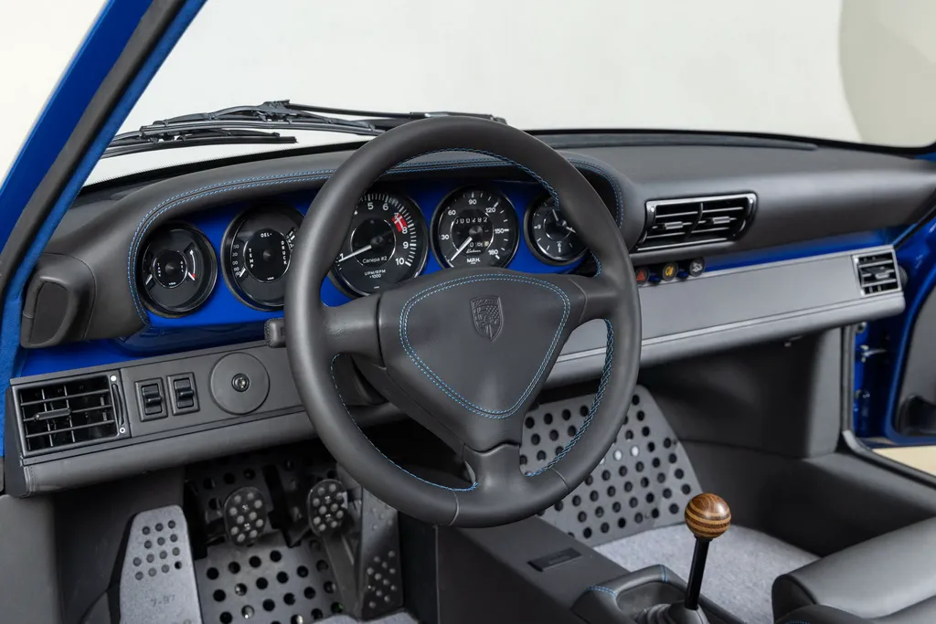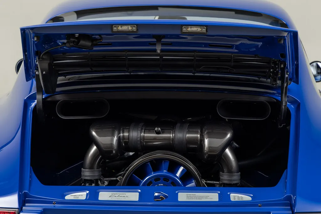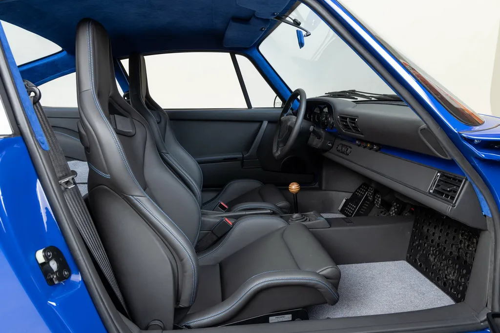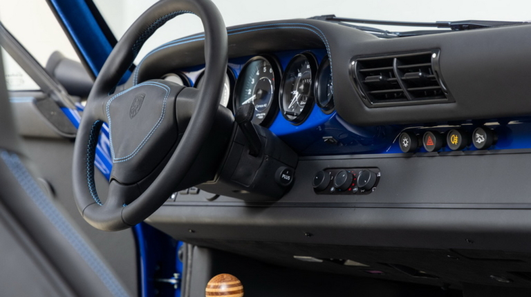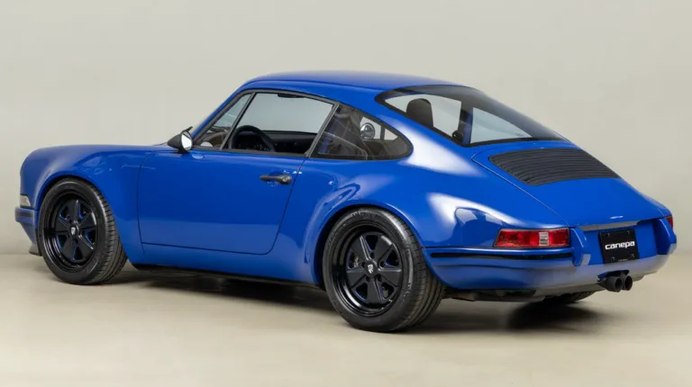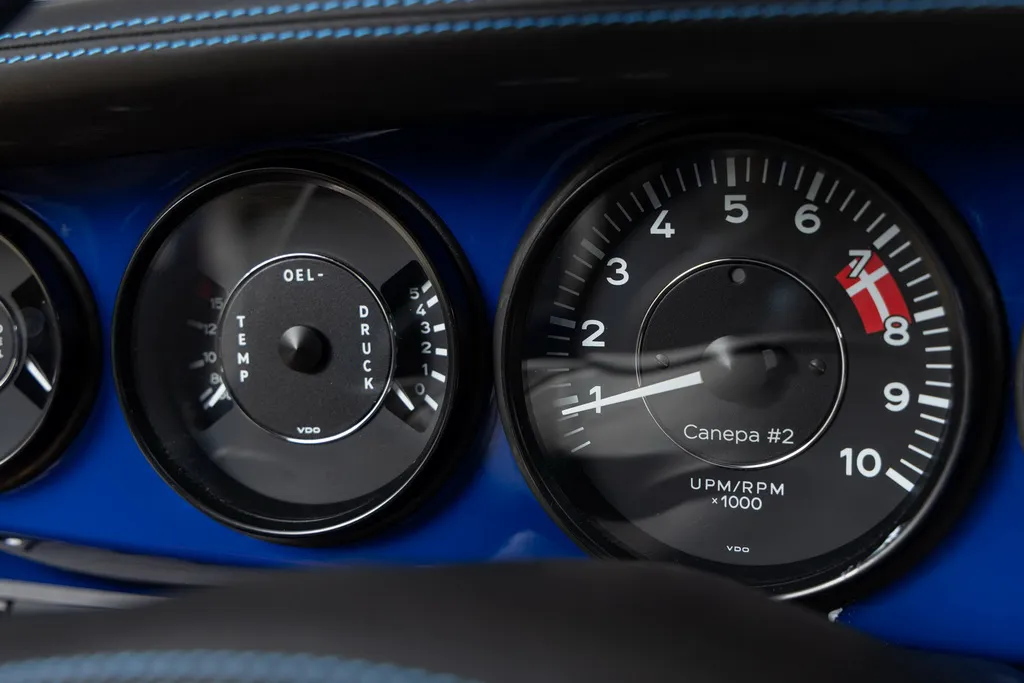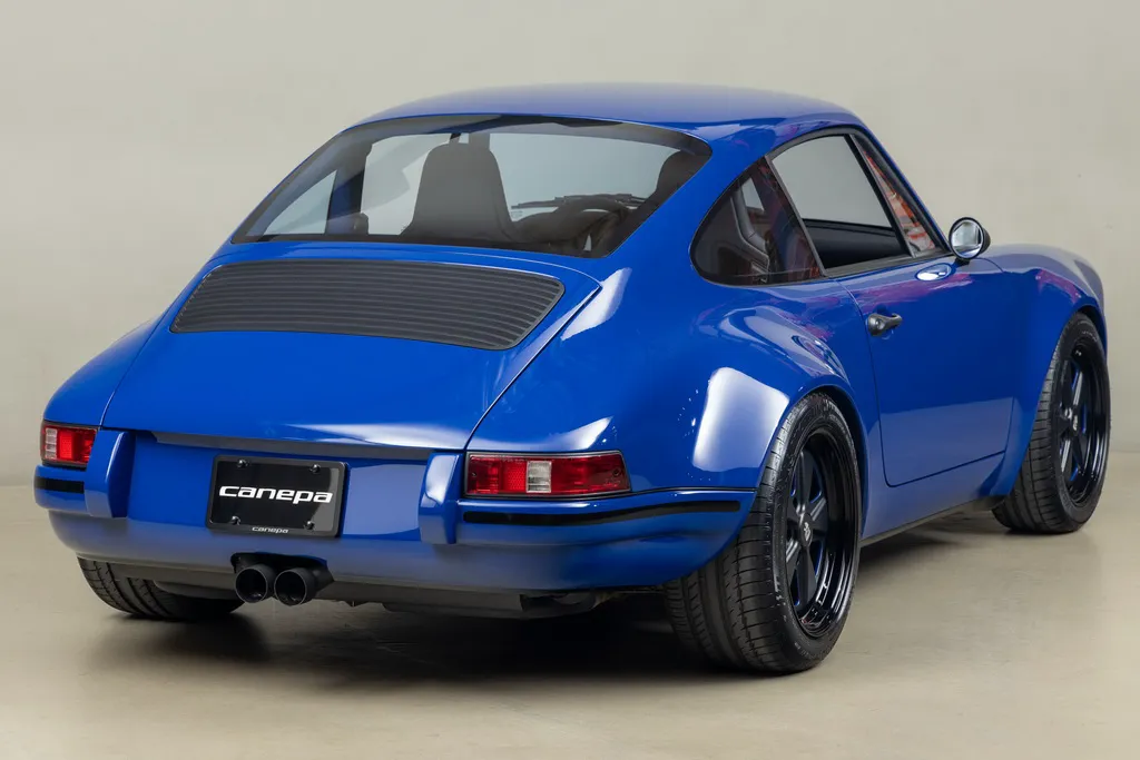 Ще одним посиланням на історію автоспорту є колір кузова рестомода. Абсолютно нові панелі виготовлені з вуглецевого волокна та пофарбовані у яскравий синій відтінок Sunoco Blue на честь гоночних болідів Porsche 917/30 Can-Am Spyder, побудованих для участі у чемпіонаті Can-Am 1973 для команди Penske. У дебютному сезоні Марк Донахью виграв на ньому 6 із 8 перегонів серії та приніс команді чемпіонський титул. Автомобіль Донахью у 2020 році пройшов повний курс реставрації у майстерні відомого американського гонщика та бізнесмена Брюса Канепи, який є замовником машини – героя нашої сьогоднішньої розповіді.