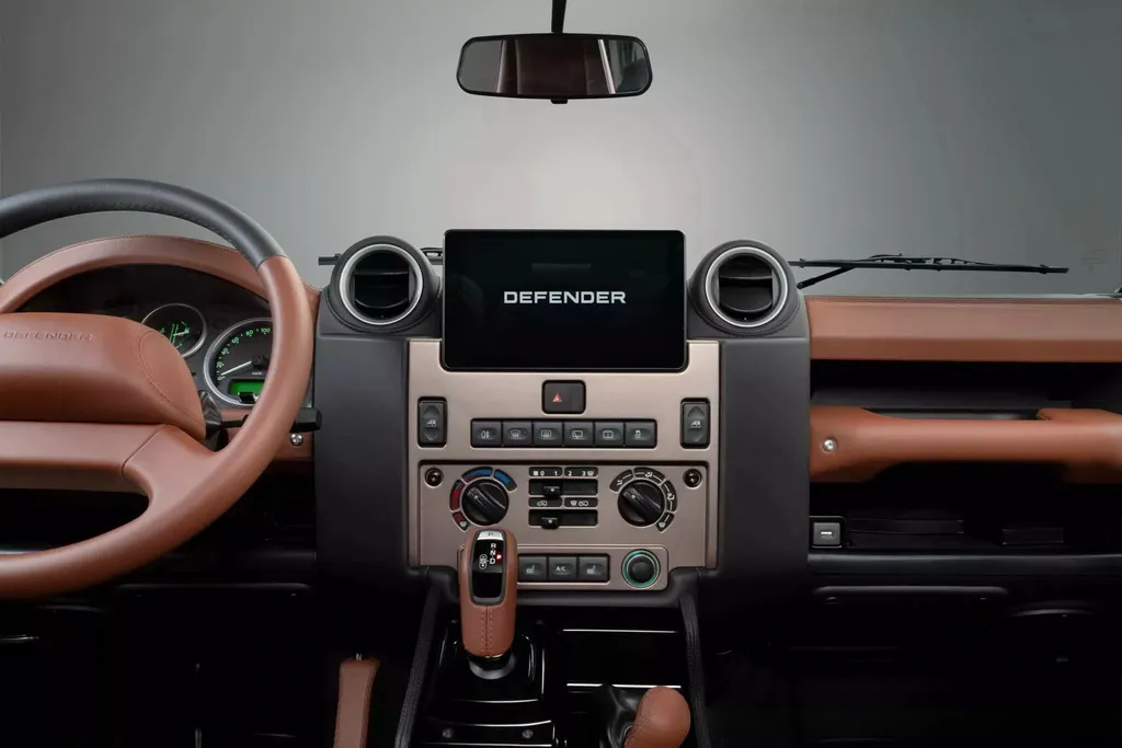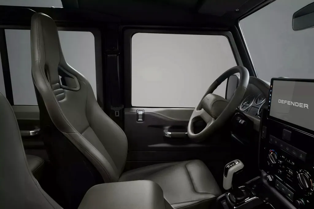 Вперше класичні Defender’и можуть бути опціонально оснащені оновленими варіантами обробки салону матеріалами Ultrafabrics у кольорах Khaki Green, Light Cloud або Lunar. Як альтернатива клієнти можуть замовити напіванілінову шкіру Burn Sienna або вибрати шкіру Ebony зі спеціальної версії OCTA Black. На центральній панелі з’явився 13,1-дюймовий сенсорний екран від OCTA, замість штатних можна замовити спортивні сидіння Recaro з підігрівом.