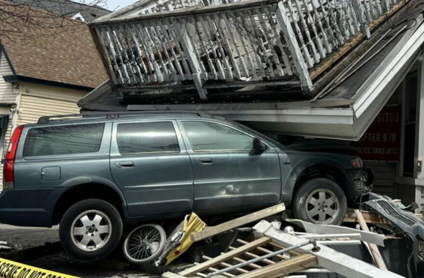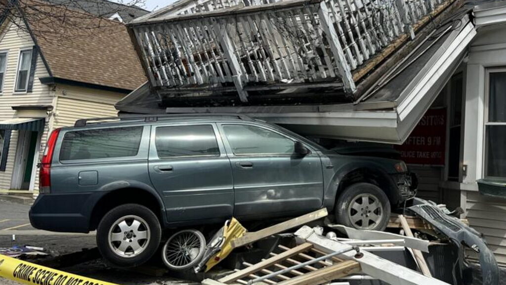 Видання Carscoops опублікувало фото дивної ДТП, яка сталася у Метьюені, штат Массачусетс. На них Volvo XC70 другого покоління привалило балконом будівлі, в яку він в’їхав. Як повідомили у поліції штату, виннуватцею інциденту стала 31-річна мешканка сусіднього Кінгстона, штат Нью-Гемпшир. Під час огляду у лікарні з’ясувалося, що не задовго до події вона знепритомніла внаслідок наркотичного сп’яніння.