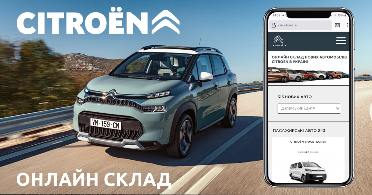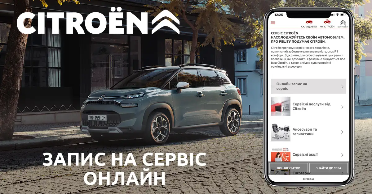 Для CITROЁN комфорт і турбота про клієнта завжди були на першому місці. І вже сьогодні CITROЕN в Україну готовий запропонувати своїм новим та вже існуючим клієнтам цілий комплекс зручних «онлайн» рішень: вибір і придбання автомобіля не виходячи з дому, запис на сервісне обслуговування онлайн, контроль своїх поїздок за допомогою смартфона, і багато іншого - все з максимальним комфортом і зручністю для вас.