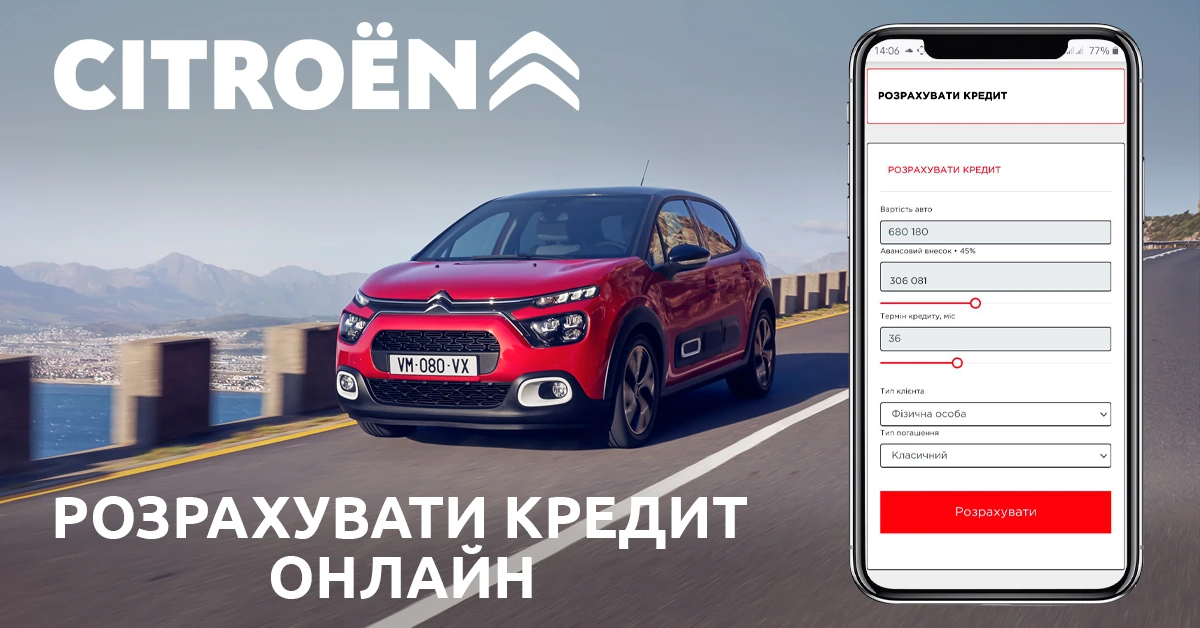Кожна послуга, кожен напрямок продумано і створено для того, щоб зробити життя власника автомобіля CITROЁN більш комфортним, простим, зручним. І тепер Бренд пропонує зручну функцію у фірмовому онлайн-магазині CITROЁN – розрахунок кредиту на автомобіль у режимі «реального часу»!