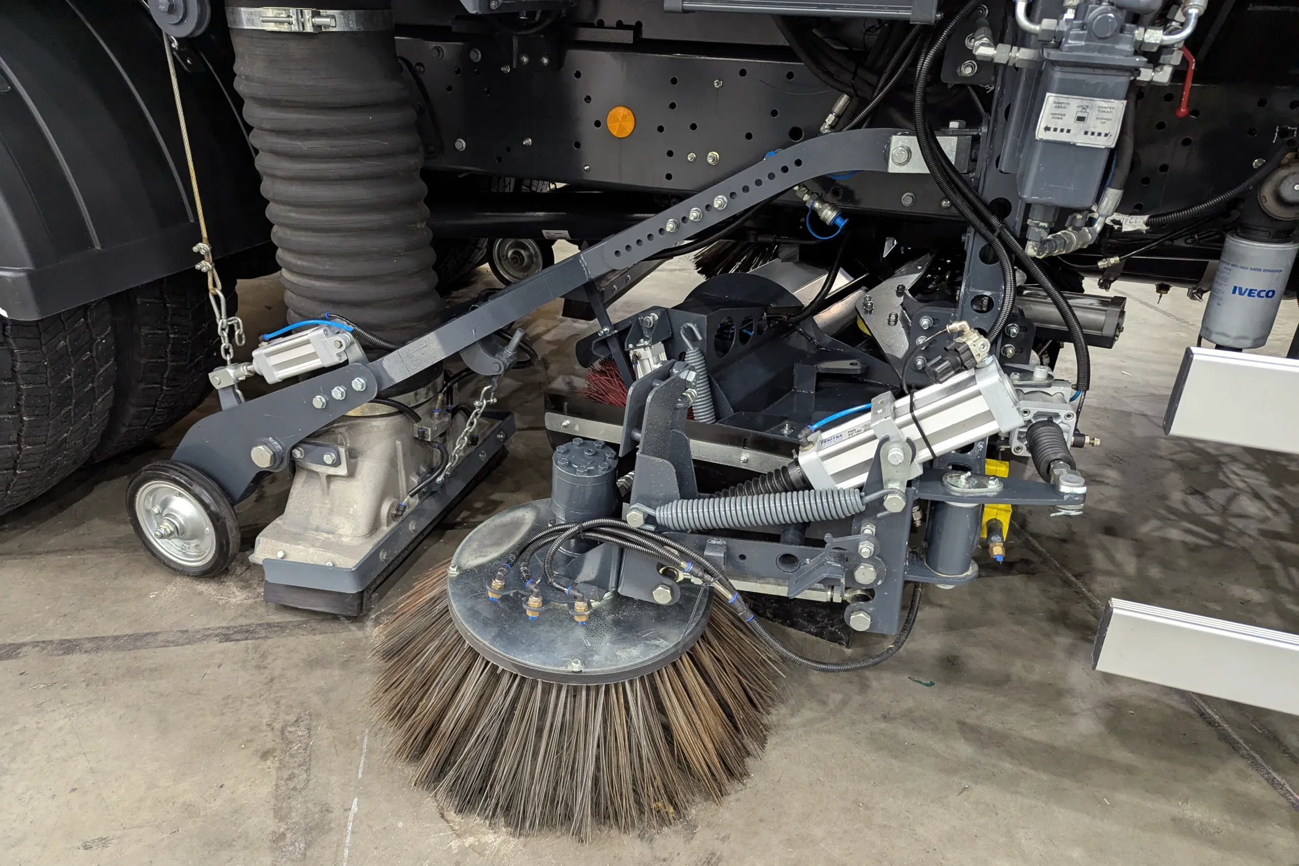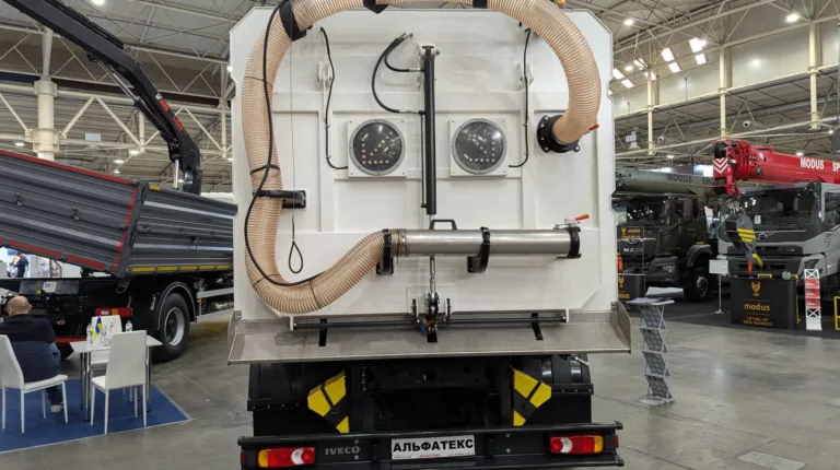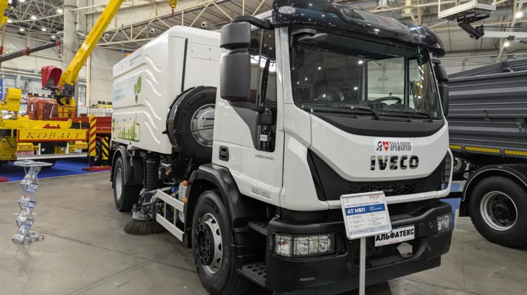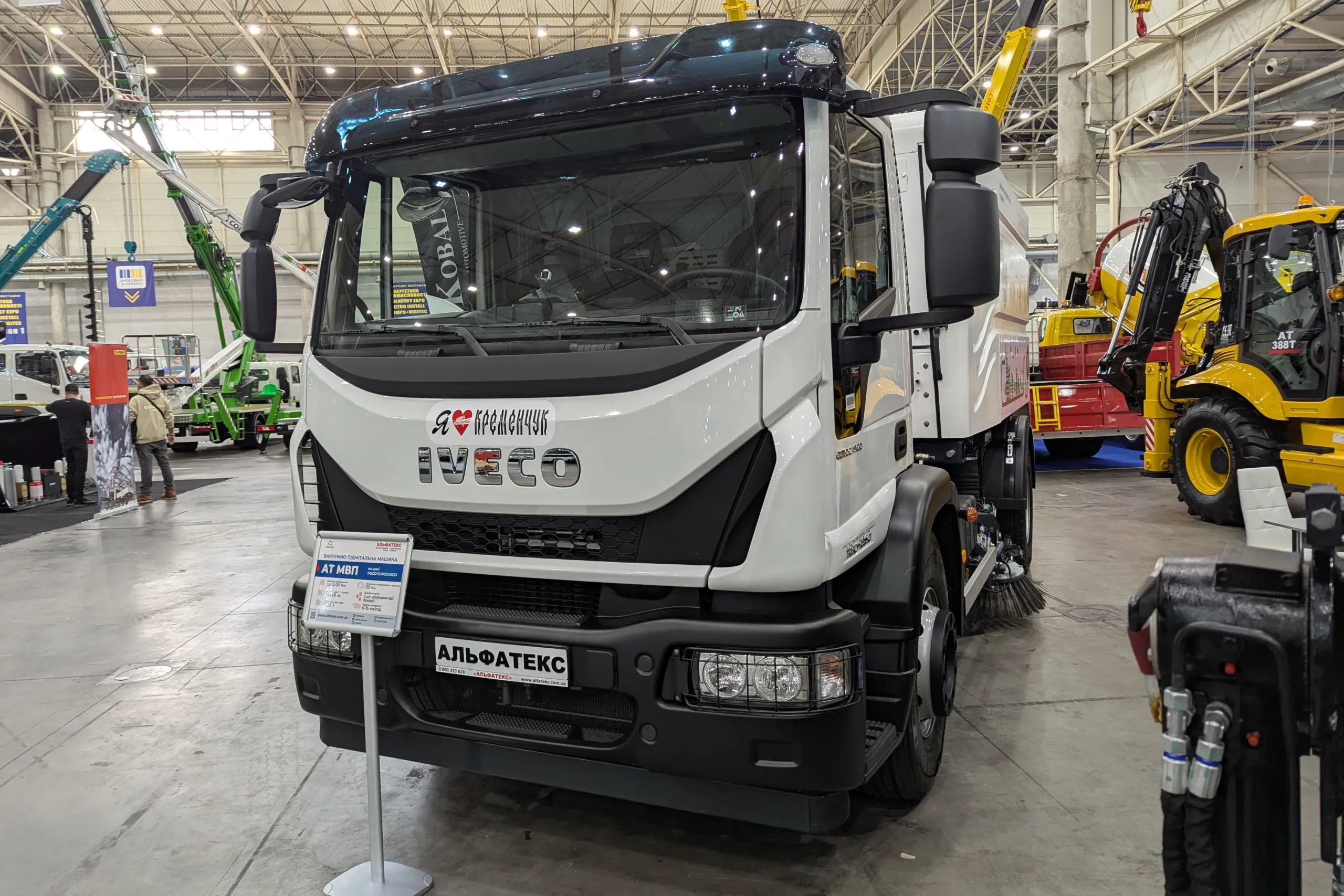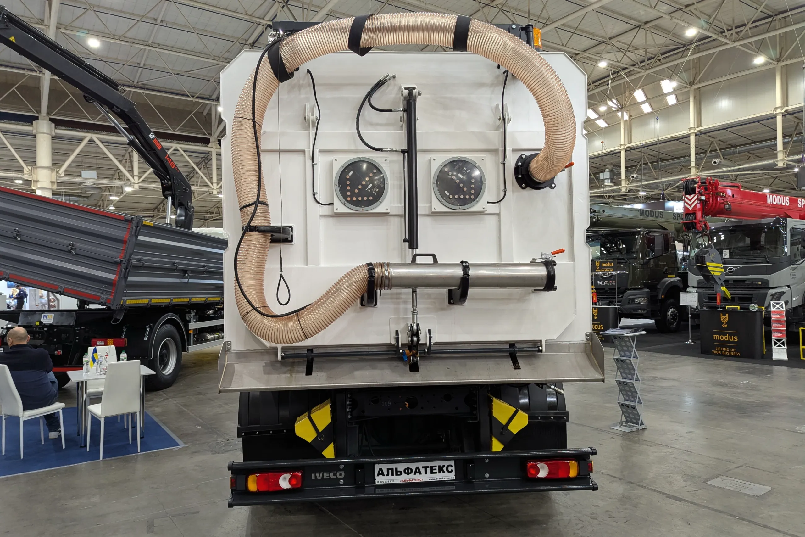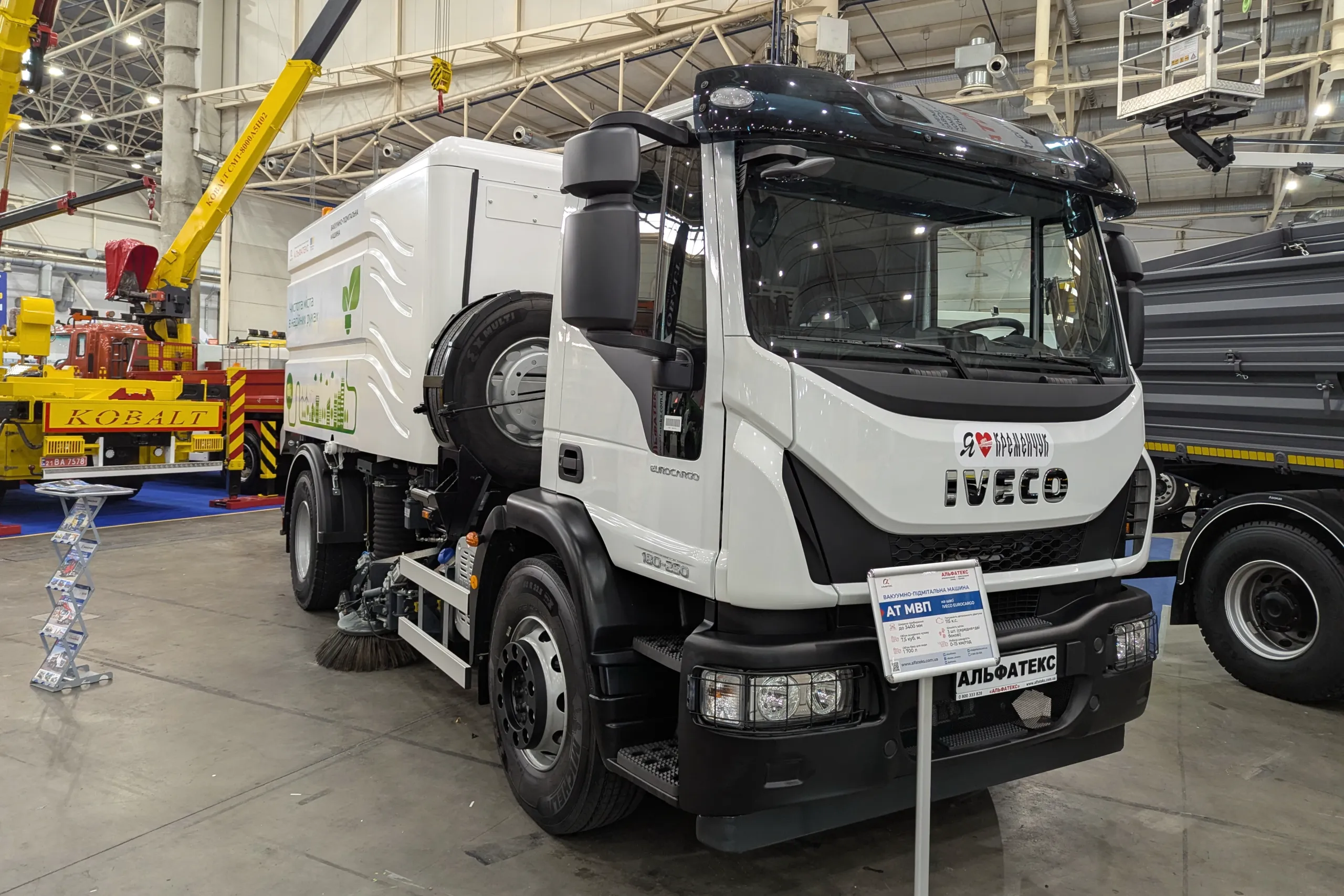 Крім цього компанія показала вакуумно-підмітальну машину АТ МВП на шасі Iveco Eurocargo 180-250. Ширина прибирання складає 3,4 м, а об’єм основного бункера – 7,5 м3. Автомобіль має бак для води на 1700 л, три щітки та автономний двигун потужністю 115 к.с. Машина може рухатись у робочому режимі зі швидкістю до 15 км/год.