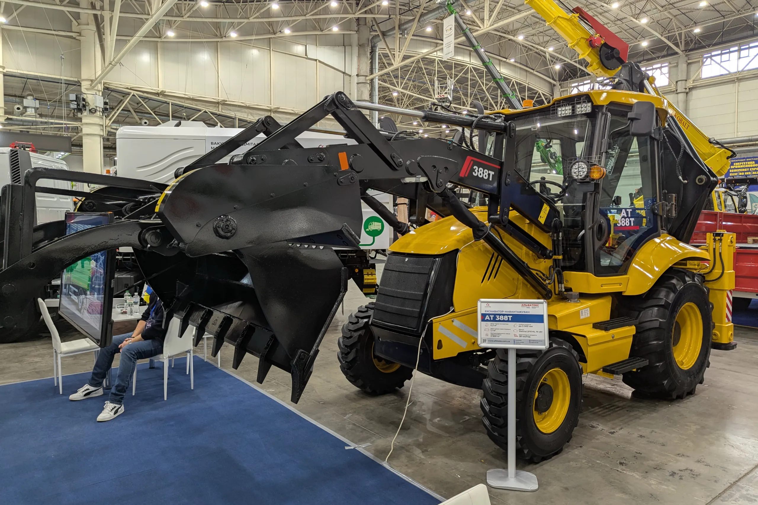 Ще однією новинкою стенду став екскаватор-навантажувач АТ 388Т. Це універсальна машина, створена для виконання широкого спектра робіт — від земляних до навантажувально-транспортних операцій. Навантажувальний ківш (6 в 1) об’ємом 1,1 м³ має вантажність до 2,5 т, а екскаваторний ківш об’ємом 0,3 м³ дозволяє ефективно виконувати земляні роботи на глибину до 5,5 м.