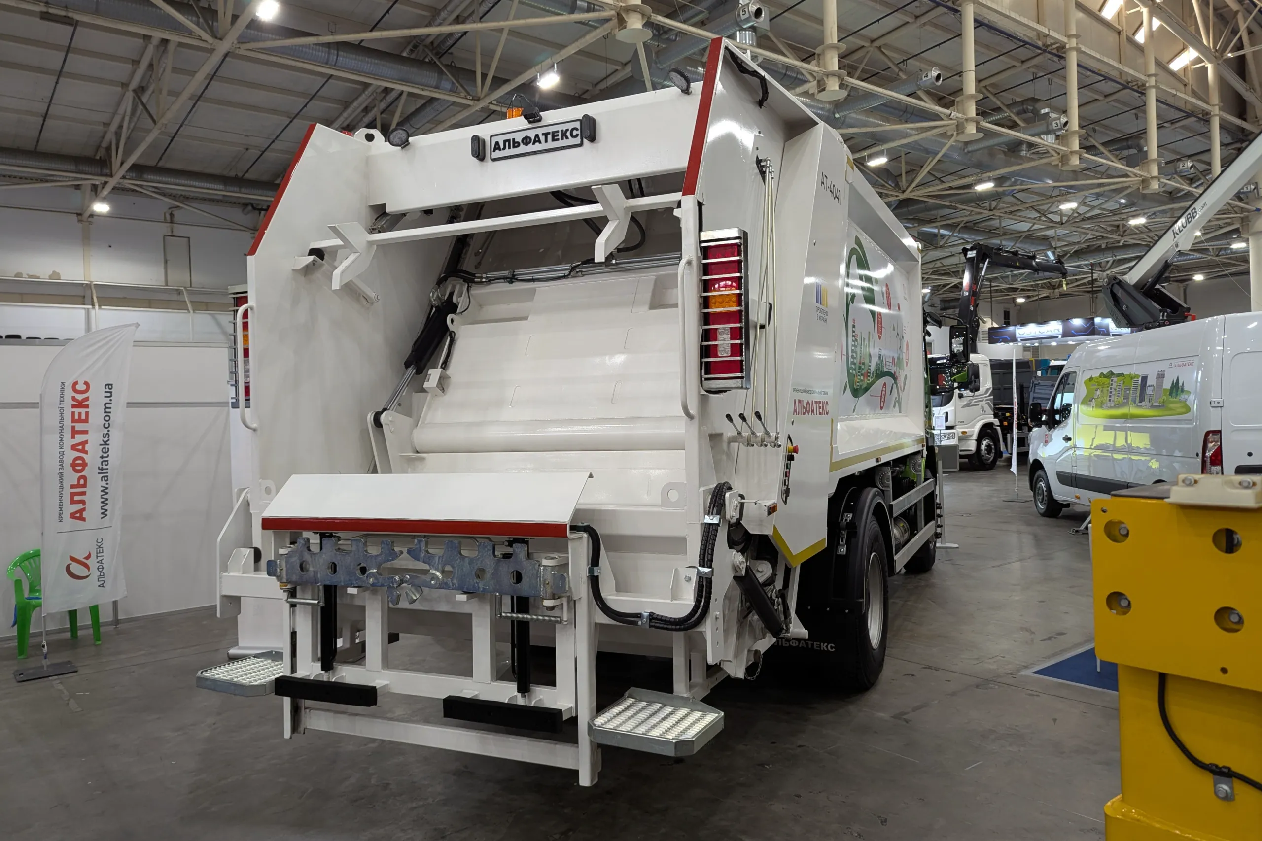 В експозиції представлений сміттєвоз із заднім завантаженням АТ-4041 на шасі Dayun СGС 1210. Він призначений для завантаження, ущільнення, транспортування та розвантаження твердих побутових відходів (ТПВ) в місцях утилізації.