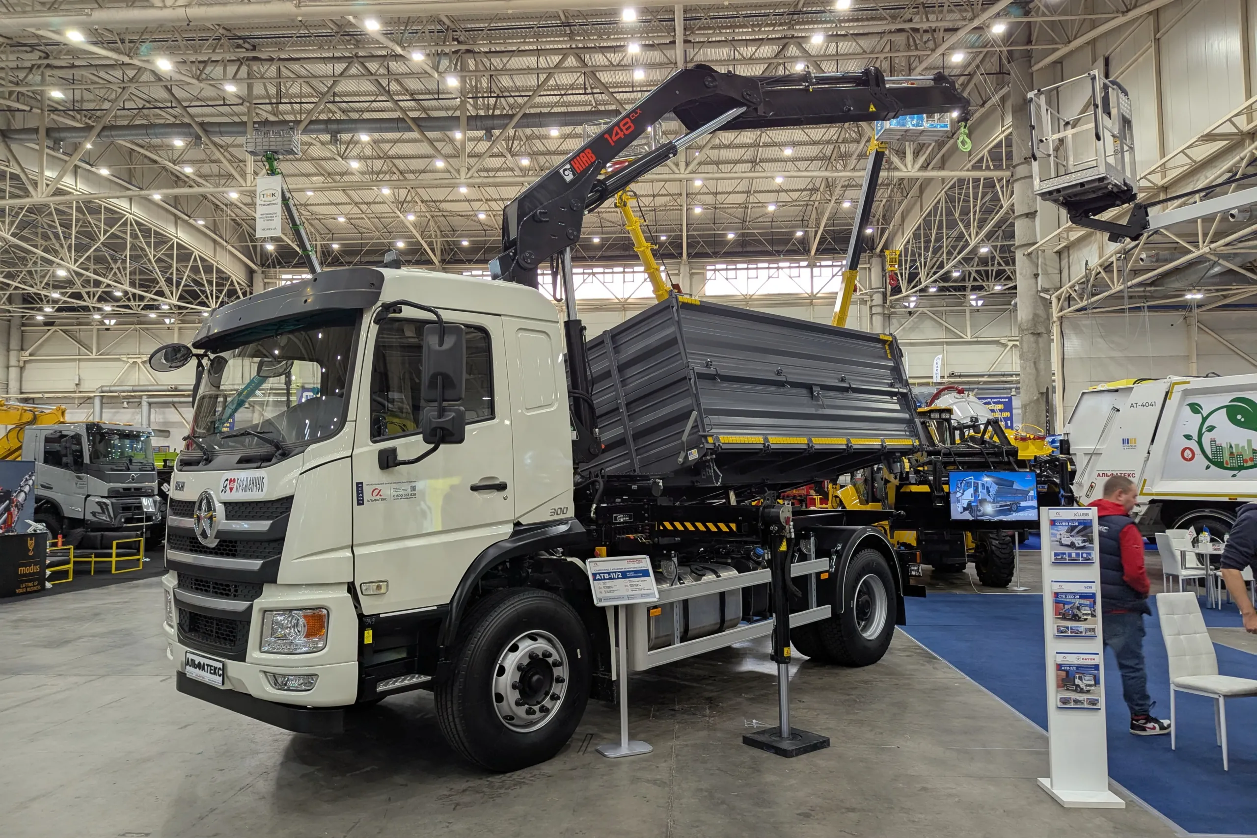 Поруч на стенді розташований новий самоскид АТВ 11/2 на шасі Dayun СGС 1210 з КМУ HIAB. Самоскидна платформа має можливість розвантаження у трьох напрямках. Її габаритні розміри становлять 3865 × 2500 × 1200 мм, а об’єм — 10 м3. Вантажність самоскида – 12 т. Шасі Dayun CGC1210 (4х2) комплектується дизельним двигуном потужністю 292 к.с. та механічною коробкою передач Fast. Кран-маніпулятор розміщений за кабіною автомобіля. Максимальний виліт стріли — 8,8 м.