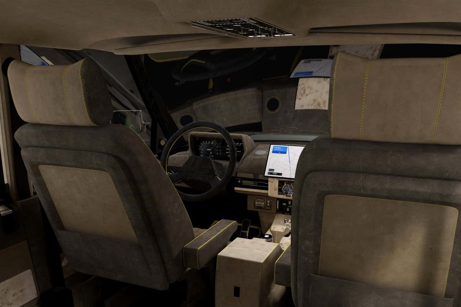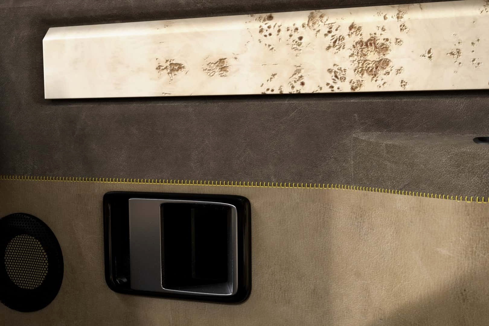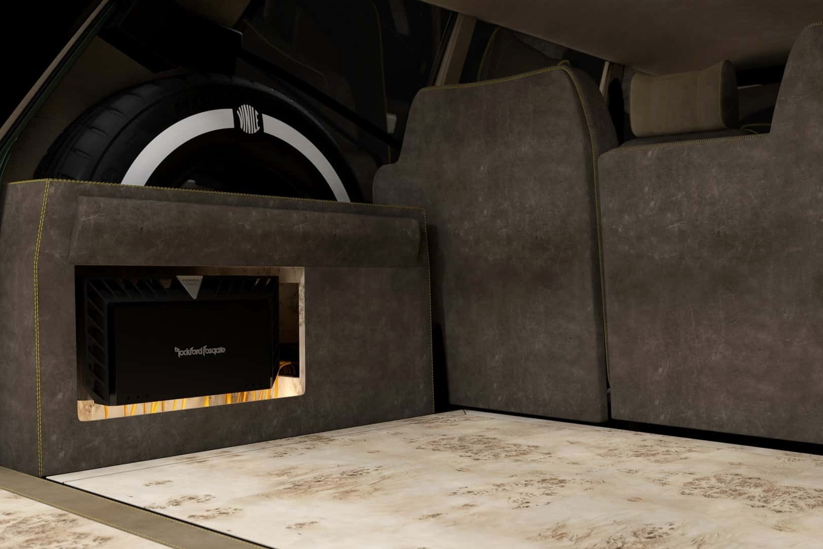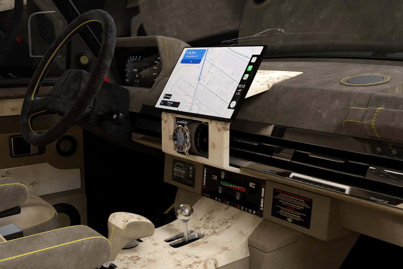 Особливу увагу автори рестомоду приділили салону. Для обробки використана шкіра Baxter двох кольорів, що покриває більшу частину салону, а особливий шарм інтер’єру надають численні елементи з кореня тополі, що зовні нагадує мармур. По центру панелі приладів встановили 10,1-дюймовий сенсорний монітор Sony, який управляє інформаційно-розважальною системою і підключений до спеціально розробленої аудіосистеми з трьома підсилювачами Rockford, десятьма динаміками та двома сабвуферами Focal. По центру торпеди розташувався годинник U-Boat Chimera.