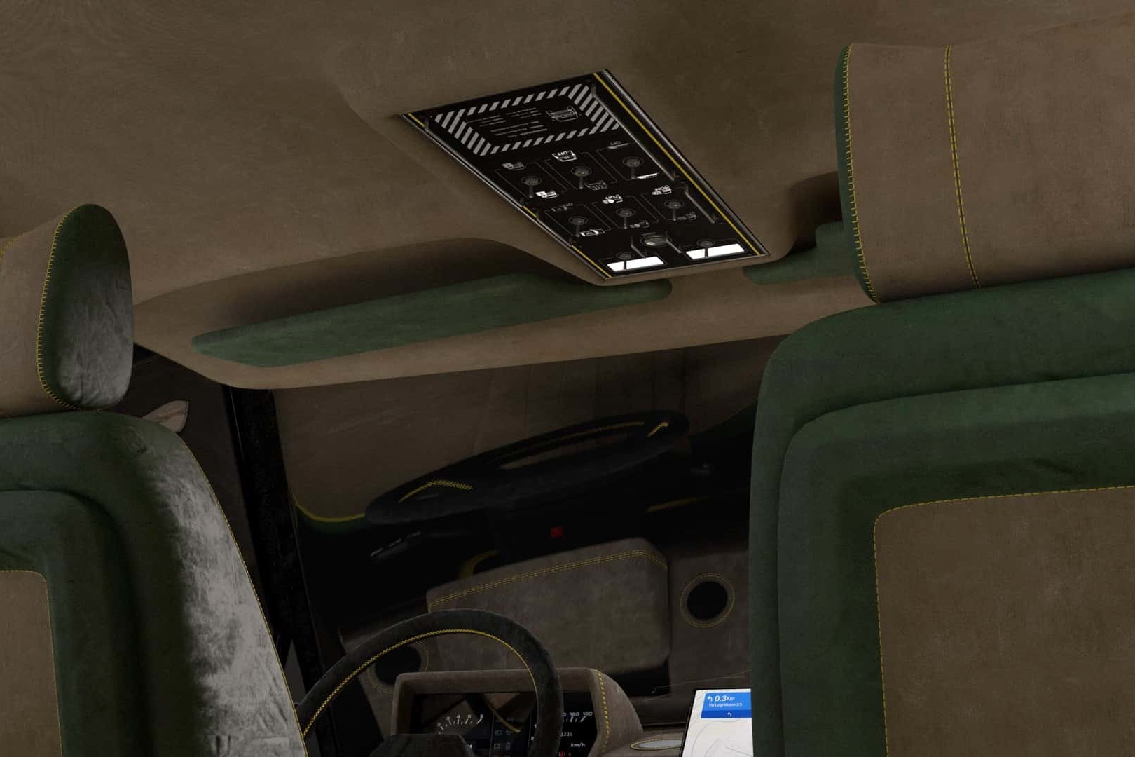 Цікавим рішенням стала блок тумблерів на стельовій панелі, які керують склопідіймачами та освітленням. А щоб запустити двигун, потрібно виконати складний ритуал: вставити ключ у замок запалювання на центральному тунелі, потім натиснути кнопку engage на стельовій панелі, а потім кнопку start на центральному тунелі.