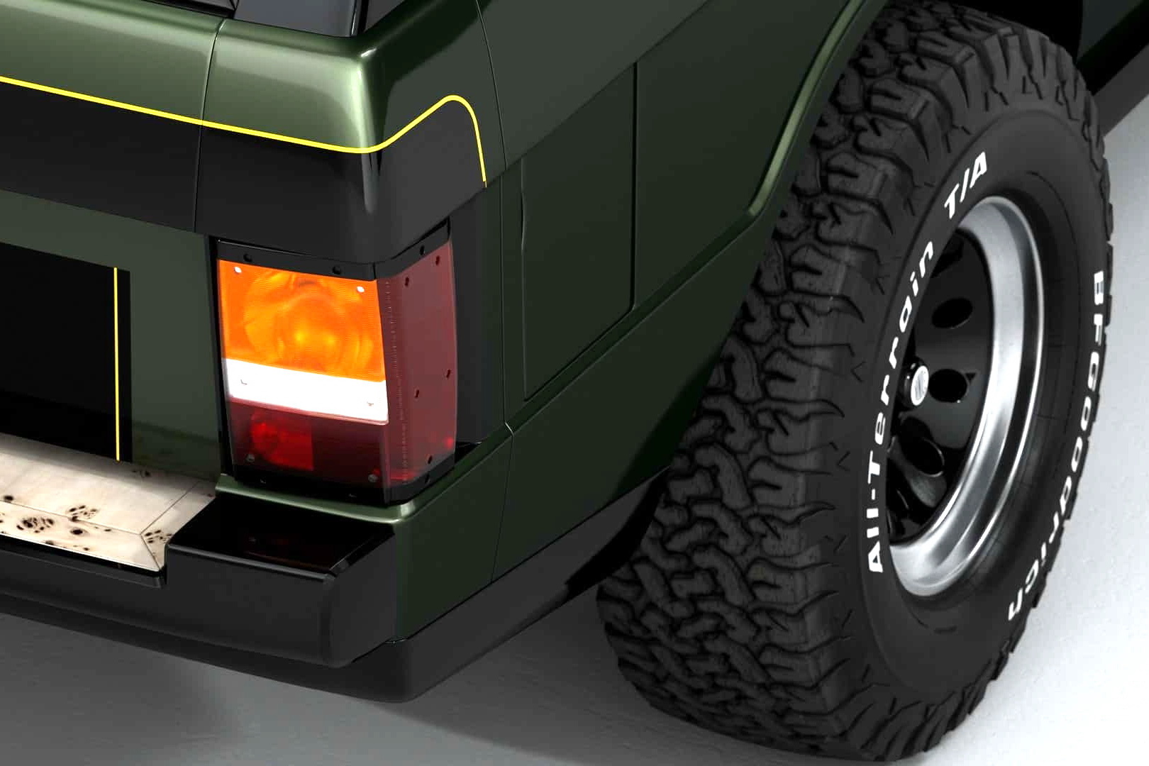 Кузов пофарбований у насичений зелений колір із контрастними чорними вставками та жовтим декоративним орнаментом. Ззаду встановили новий дифузор у колір кузова, LED-ліхтарі та спойлер над задніми дверима.