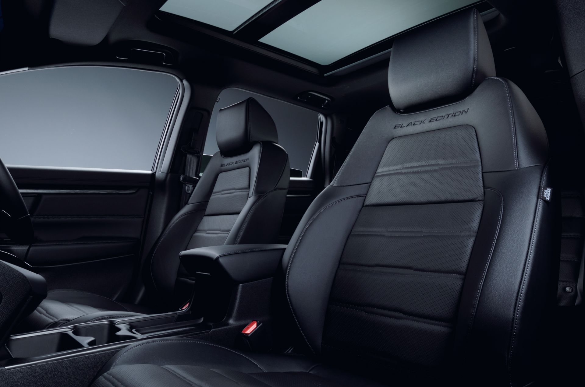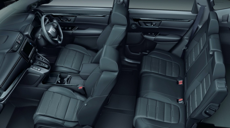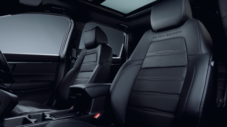 Салон Honda CR-V также выполнен в соответствующей стилистике. Черной высококлассной кожей отделаны сидения, дверные карты, передняя панель и потолок. На все ключевые элементы интерьера нанесен логотип Black Edition.