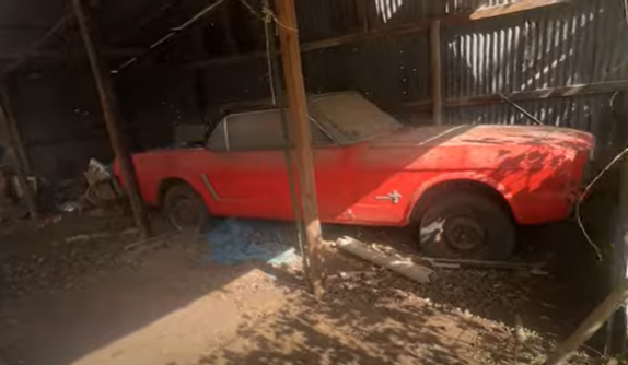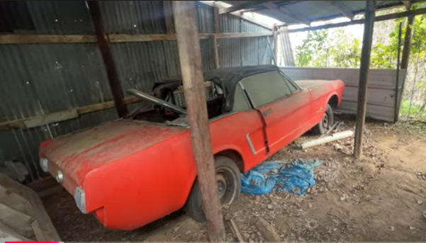 Крім деталей двигуна в задній частині сараю знаходяться деякі елементи інтер’єру, ще приводний вал, ковпаки ступиць та гальмівні барабани. Темний складаний верх теж неабияк потріпався. Незважаючи на це, фахівці взялися відновити культовий автомобіль. Вони зазначили, що на вторинному ринку зараз можна знайти чимало оригінальних деталей та повернути цей Mustang на дороги.