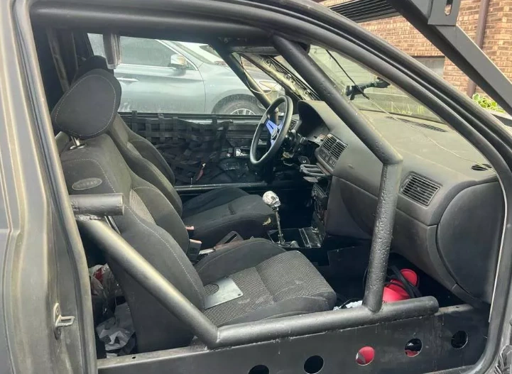 Модернізації торкнулися і салону цього VW Golf. Тюнери демонтували дверні карти, встановили нове рульове колесо і важіль перемикання передач у формі черепа. Також є трубчастий каркас безпеки. Інша частина інтер'єру виглядає стандартної.