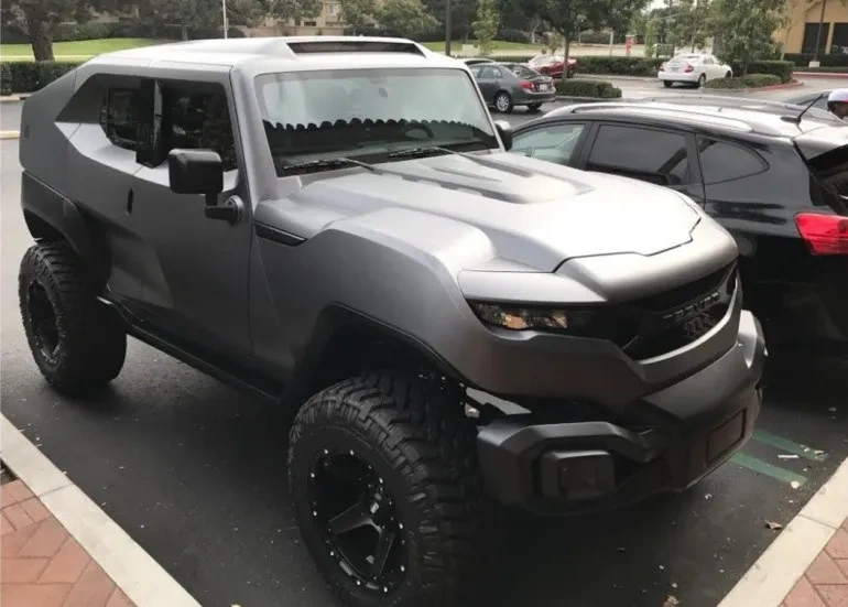 Лобове скло захищене сталевими прутами і включає в себе велику світлодіодну смугу. Задні крила машини розширені, а на даху встановлений багажник, який переходить в дуги вантажної платформи. Ще є великий загострений спойлер з листової сталі, бризковики, фаркоп і дифузор. А ось задні ліхтарі виглядають дуже дешево.