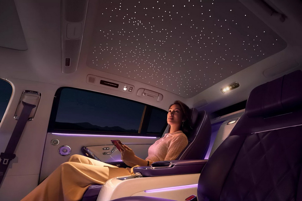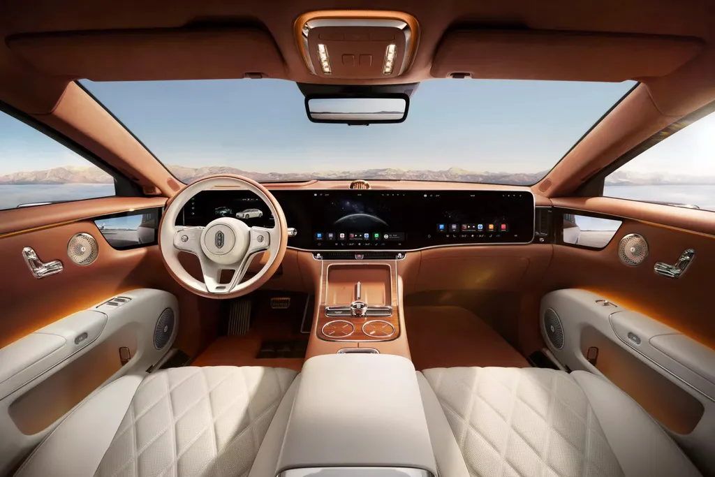 У салоні S800 можна знайти 15,6-дюймовий екран мультимедійної системи та 16-дюймовий монітор для пасажира. Оперативна інформація проєктується на лобове скло безпосередньо перед очима водія. До послуг мешканців салону також дві бездротові зарядки для смартфонів та аудіосистема з 43 динаміками. Покупці зможуть вибирати два варіанти конфігурації салону – базову 5-місну або топовий варіант із двома заднім індивідуальними кріслами підвищеного комфорту.