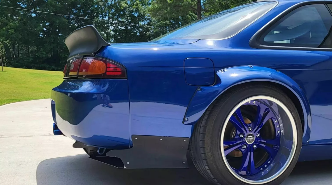 Пропонований автомобіль зійшов з конвеєра в 1995 році та знаходиться в ідеальному стані. Ззаду у Nissan 240SX немає ні натяку на екстремальність, за винятком розширених колісних арок, а спереду образ зовсім інший. Все завдяки обвісу від Rocket Bunny. Він вносить в образ легендарного купе риси класичних маслкарів. Але американський вплив проявляється не тільки в дизайні.