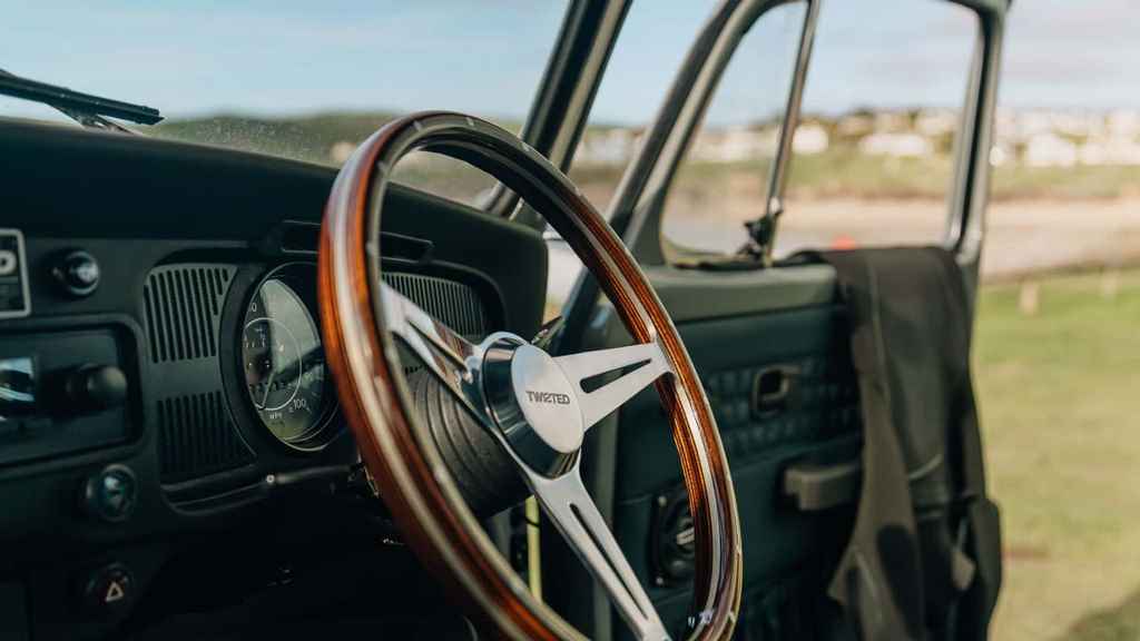 Салон TBug може бути оздоблений як шкірою, так і алькантарою. Twisted Automotive пропонує максимальний рівень персоналізації. І вона передбачає не тільки обробку згідно з побажаннями клієнтів, а й зміну оснащення. У рух рестомод призводить опозитний двигун потужністю 80 к. с.