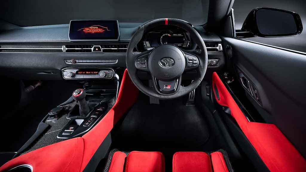 У салоні купе можна побачити карбонові ковшоподібні сидіння Recaro з червоними ременями безпеки. В обробці переважає алькантара. Також є каркас безпеки. Під капотом лімітованої Supra A90 Final Edition встановлено 3,0-літровий рядний шестициліндровий двигун BMW, який видає 429 к. с. потужності і 570 Нм крутного моменту. Мотор працює в парі з шестиступеневою механічною коробкою передач. Продаватися спецверсія буде виключно на ринку Європи і Японії.