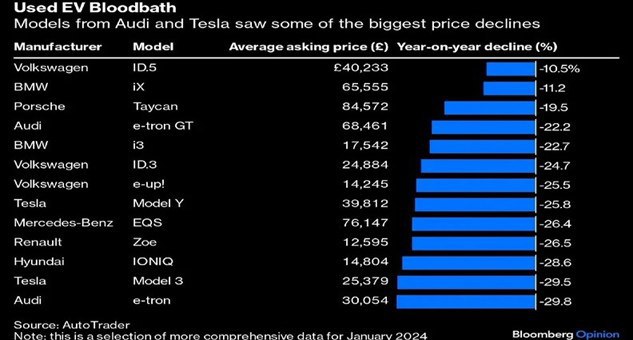 Значна втрата вартості електромобілів на вторинному ринку стала проблемою автовиробників. Щоб продовжити продажі нових автомобілів їм доводиться гарантувати лізинговим компаніям викуп та компенсувати падіння цін. Це має захистити ринок електромобілів від стагнації.