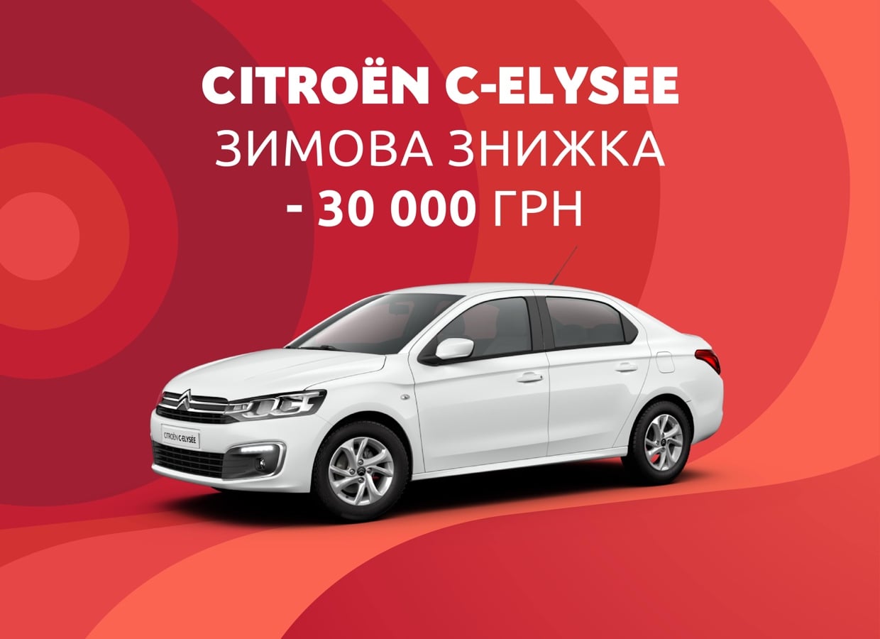 Настав час дарувати подарунки – і Бренд CITROЁN вже готовий це зробити для автолюбителів України. Адже тепер седан CITROЁN C-Elysée можна придбати дуже вигідно: спеціальні «зимові знижки» сягають 30 000 грн! Пропозиція діє з 1 грудня та поширюється на обмежений склад автомобілів у комплектації Feel з економічним бензиновим двигуном 1.6 на 115 кінських сил з надійною МКПП. Не пропустіть свою вигоду при покупці популярного бестселера CITROЁN C-Elysée і отримайте свою знижку прямо зараз.
