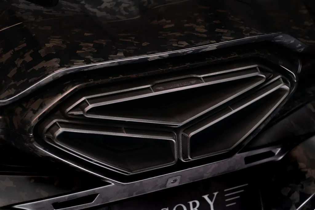 Новий передній бампер і капот надають Carbonado X унікального та ефектного зовнішнього вигляду, який продовжується і в бічній частині кузова завдяки оновленим порогам з вбудованими дефлекторами повітря та бічним повітрозабірникам для охолодження двигуна. Повітрозабірник на даху, що покращує приплив повітря, що охолоджує, до двигуна V12 зверху, завершує захопливий бічний вигляд автомобіля.