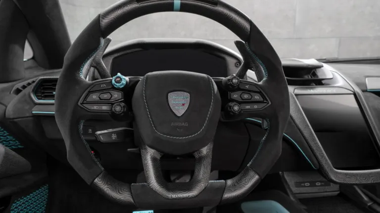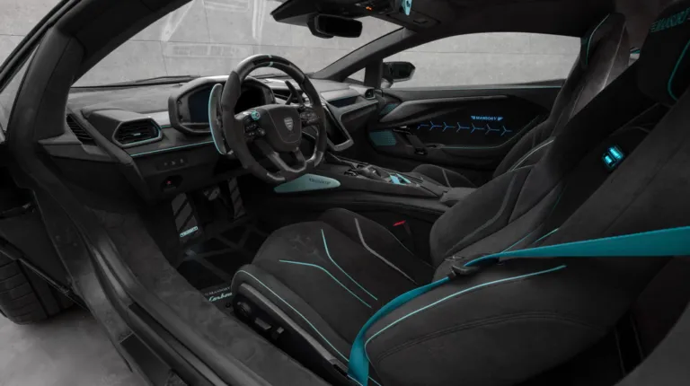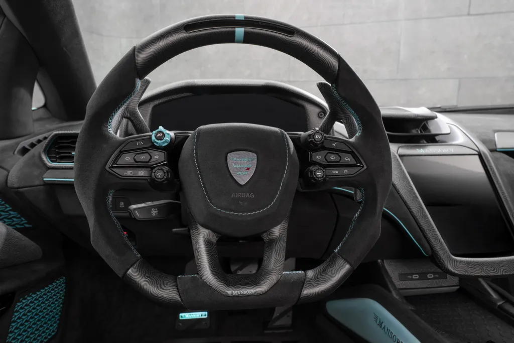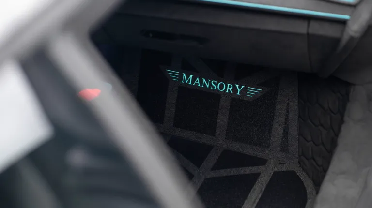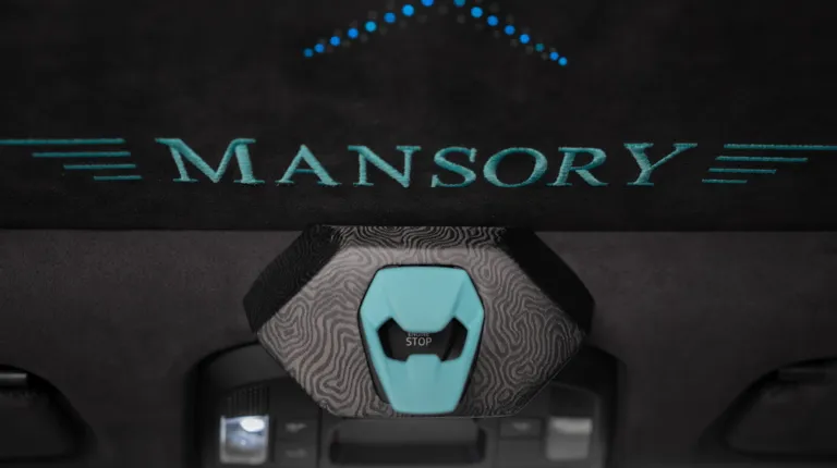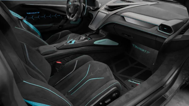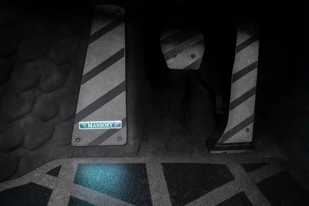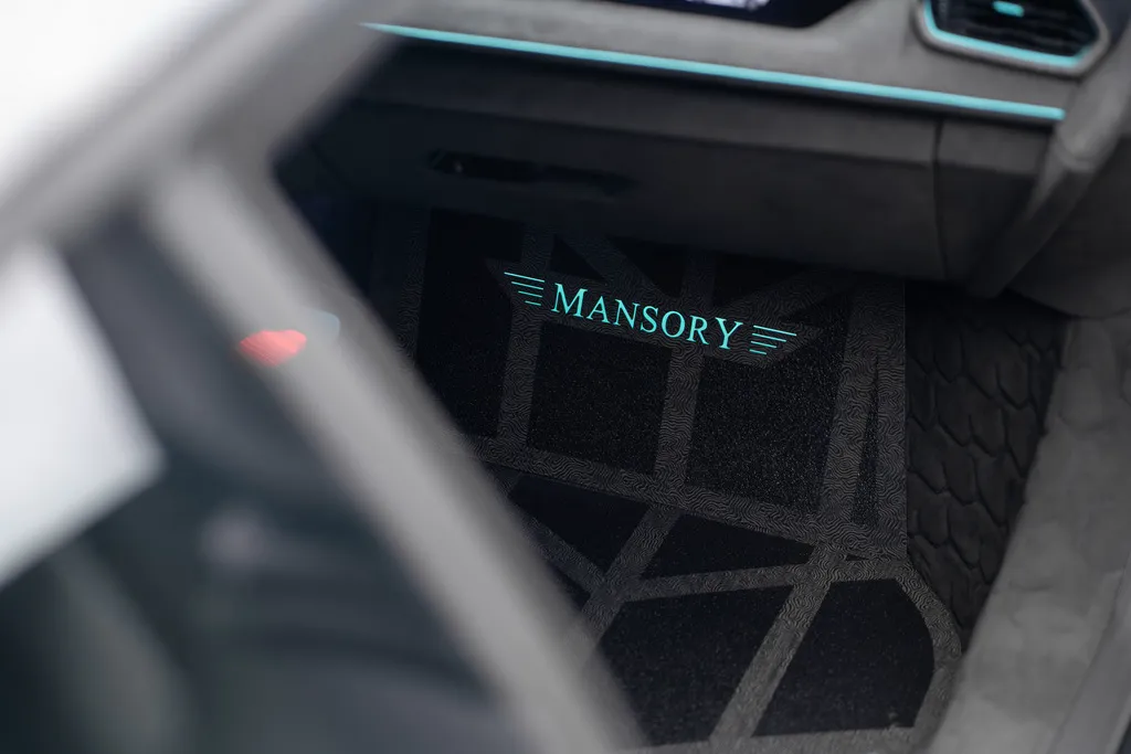 Інтер’єр Carbonado X оздоблений темною алькантарою, яка ідеально гармонує із контрастними бірюзовими декоративними елементами. Крім того, автомобіль отримав підсвічування дверних панелей та логотипів Mansory.