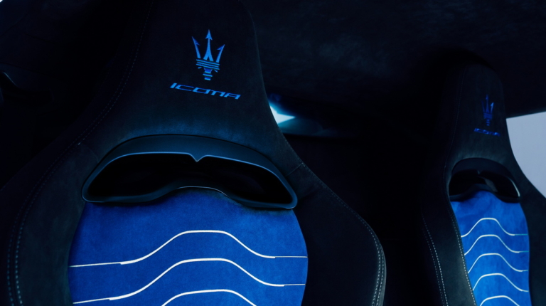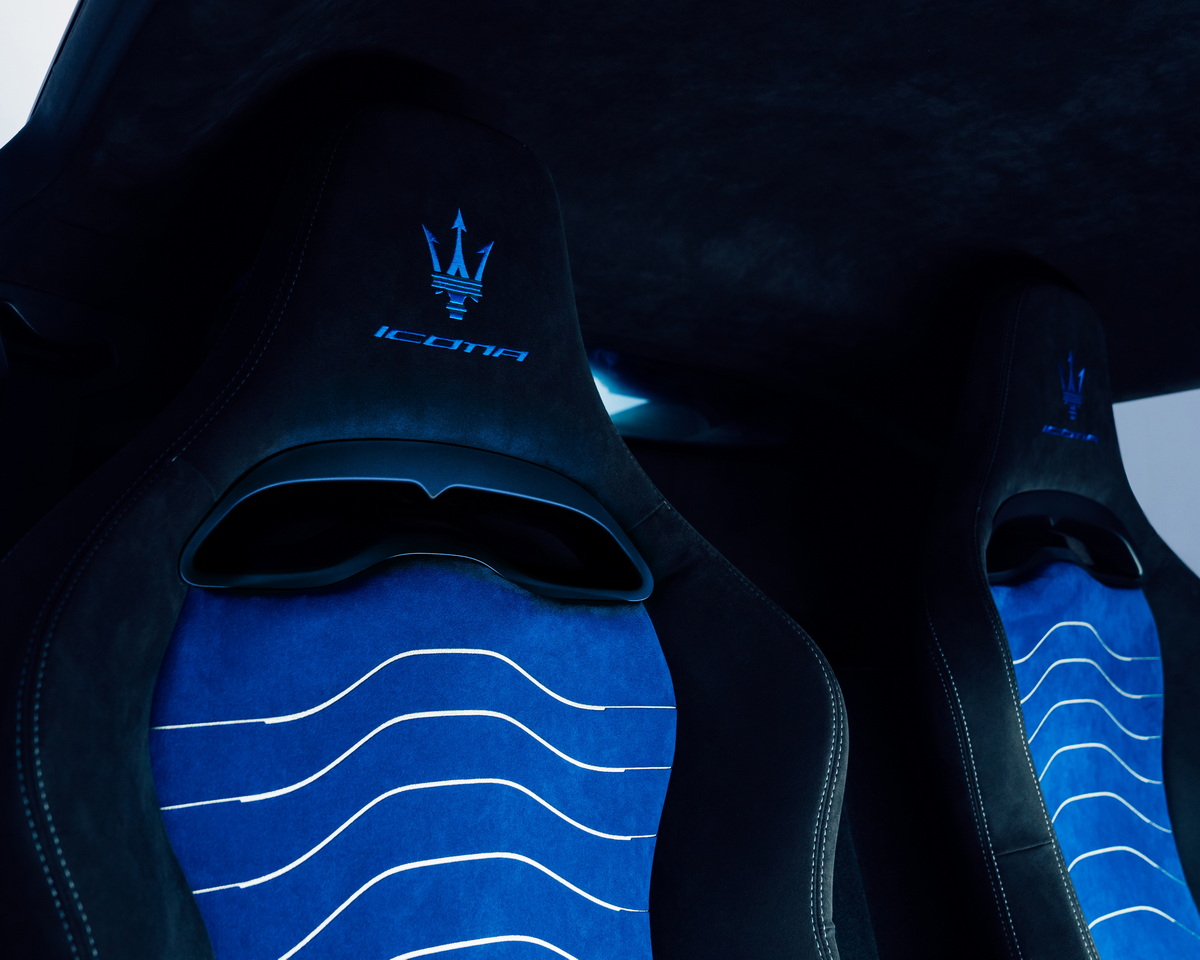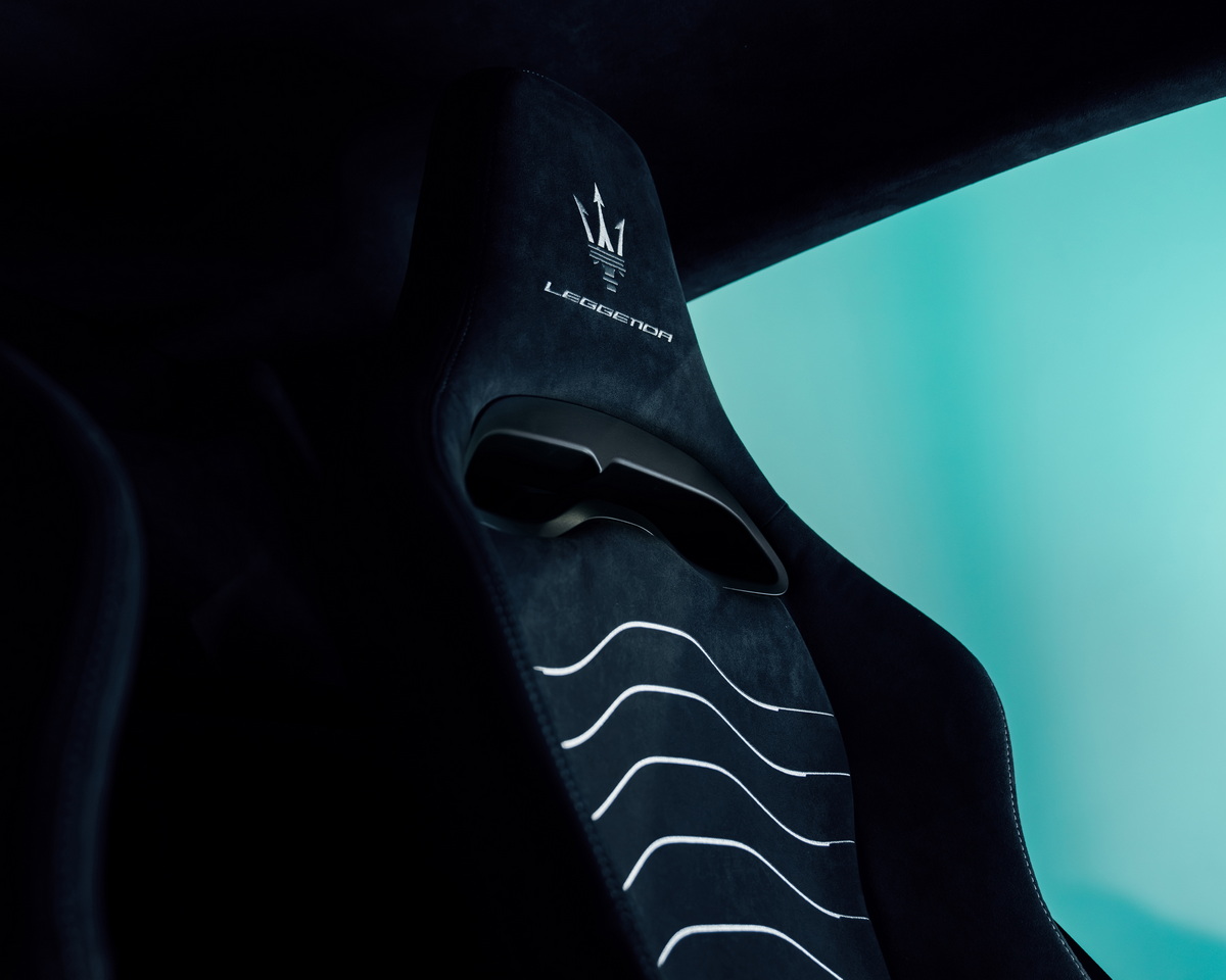 У салоні з’явилися легкі гоночні сидіння з 4-позиційним регулюванням – центральна частина кольору Nero/Blu на срібному фоні для Icona або кольору Nero на срібному фоні для Leggenda – і вишивка Trident на підголівник разом із написом “Icona” або “Leggenda” залежно від моделі. Для меломанів підготували аудіосистему Sonus Faber.