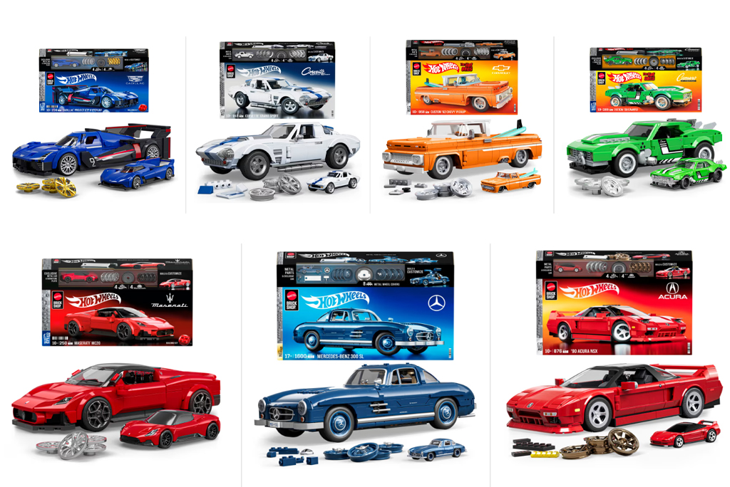 Базова серія Speed представлена трьома наборами в масштабі 1:32 та вартістю $19,99. Вона включає Maserati MC20, Cadillac Project GTP Hypercar та кастомізований Chevrolet Camaro 1968 року. Колекція Brick Shop від Mattel надійде до магазинів улітку, а роздрібні продавці вже почали приймати попередні замовлення.