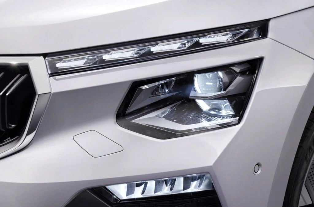 Характерні розділені фари Kamiq тепер мають нові пропорції. Верхній ліхтар тонший, ніж раніше, і містить чотири різко викреслені кристалічні модулі денних ходових вогнів. На додаток до повністю світлодіодного базового варіанту, Kamiq тепер також доступний з матричними фарами TOP LED. Нижче розташований додатковий точковий ліхтар для розширеної функції дальнього світла. Весь блок фар виблискує кристалічними структурами і обрамлений хромованими елементами. Фари TOP LED Matrix дозволяють водіям залишати дальнє світло включеним постійно, не засліплюючи інших учасників дорожнього руху. Зустрічні транспортні засоби розпізнаються камерою та автоматично вирізаються зі світлового променю. У світлодіодних задніх ліхтарях розділений L-подібний світловий знак, що тягнеться до дверей багажника, було переглянуто для топового варіанту (задні ліхтарі TOP LED), який включає динамічні покажчики повороту. L-подібні відбивачі та задня протитуманна фара візуально пов’язані із задніми ліхтарями.