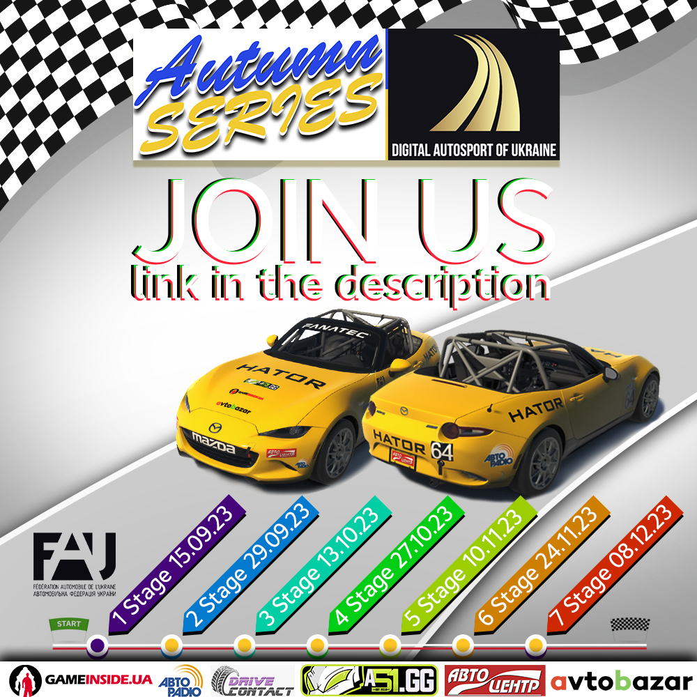 Комісія Цифрового Автоспорту запрошує прийняти участь у Міжнародній Серії змагань під назвою “Digital Autosport of Ukraine: Autumn Series-23”.