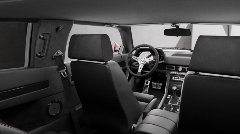 Інтер’єр також виконано у сучасному стилі. Спереду встановили трьохспицеве спортивне кермо та анатомічні передні крісла Recaro Classic LX з численними регулюваннями та комбінованим оздобленням зі шкіри та алькантари. Вся необхідна водієві інформація виводиться на цифрову панель приладів з TFT-екраном, а класичний годинник Maserati віддає данину традиціям бренду.