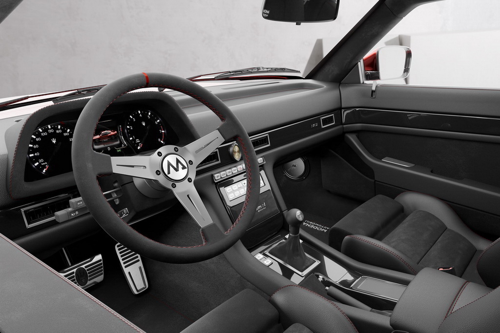 Перший проєкт Modena Automobili – Biturbo Shamal стартував ще у 2022 році. «Донором» прототипу став Maserati Biturbo Coupe 1983 року. Двигун V8 змінили на 3-літровий Maserati V6 Twin Turbo, який має більш ніж 450 «конячок» та 550 Нм крутного моменту. З ним співпрацює 8-ступеневий «автомат» ZF. За уточненими даними, на розгін до першої “сотні” рестомоду потрібно менше ніж 5 секунд, а максимальна швидкість заявлена понад 280 км/год.