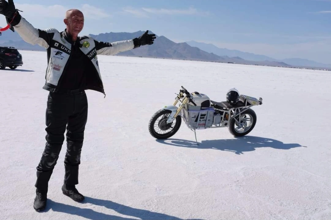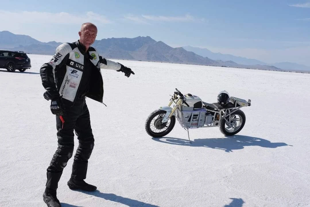 На высохшем соляном озере Bonneville Salt Flats, штат Юта, на котором в эти дни проходит фествиваль скорости Speed Week 2021, известный украинский гонщик, президент Киевского городского автомоклуба Сергей Малик установил мировой рекорд скорости на электромотоцикле Dnepr, в классе "А" Omega. Его результат составил 107,217 миль в час - 172,61 км/ч.