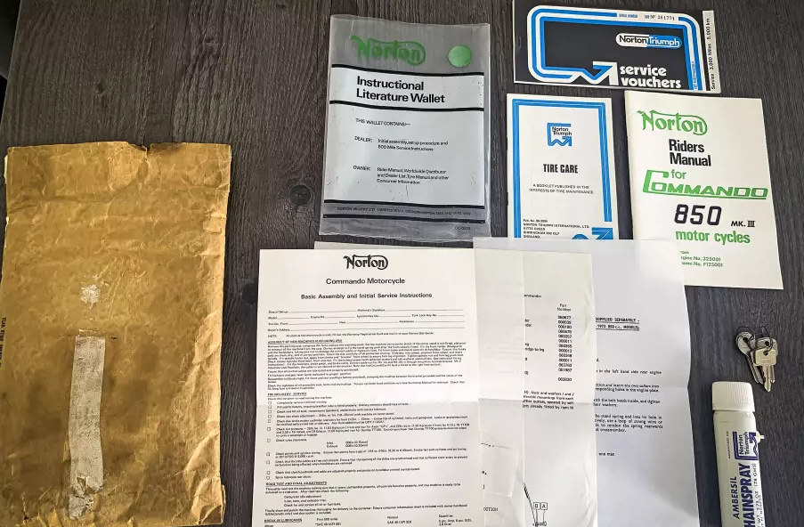 Мотоцикл британської марки, яка має багаторічну історію, випустили в 1977 році. Спочатку він вирушив у дилерський центр в Бельгії, де його придбав місцевий колекціонер. Через кілька років унікальний екземпляр перепродали в Голландію, а потім в Іспанію. Однак і в останній точці він надовго не затримався, а знову був проданий і повернувся до Великої Британії. Причому до нинішнього власника він приїхав в заводській упаковці, яку він за 43-річну історію так і не залишив.