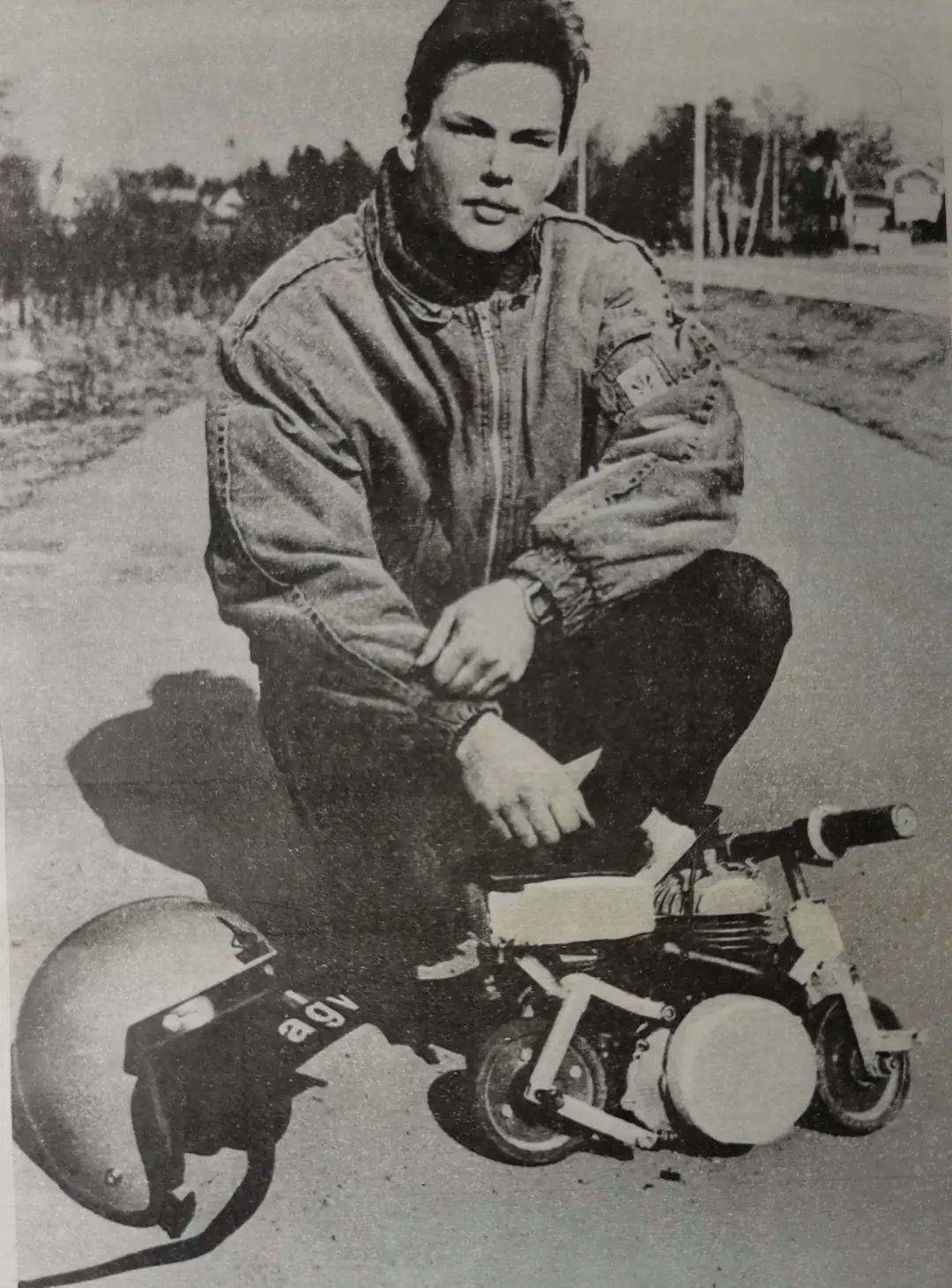 Більш практичний міні-мотоцикл спроектував і виготовив ще у 80-ті роки його земляк – сімнадцятирічний Андерс Франссон, мешканець шведського села Недебрі. Зроблена ним двоколісна машинка була завдовжки 42 см і без особливих зусиль поміщалася в спортивну сумку свого творця. Важила конструкція лише 11 кг, але з допомогою компактного двигуна внутрішнього згоряння могла розвивати швидкість до 30 км/г од.