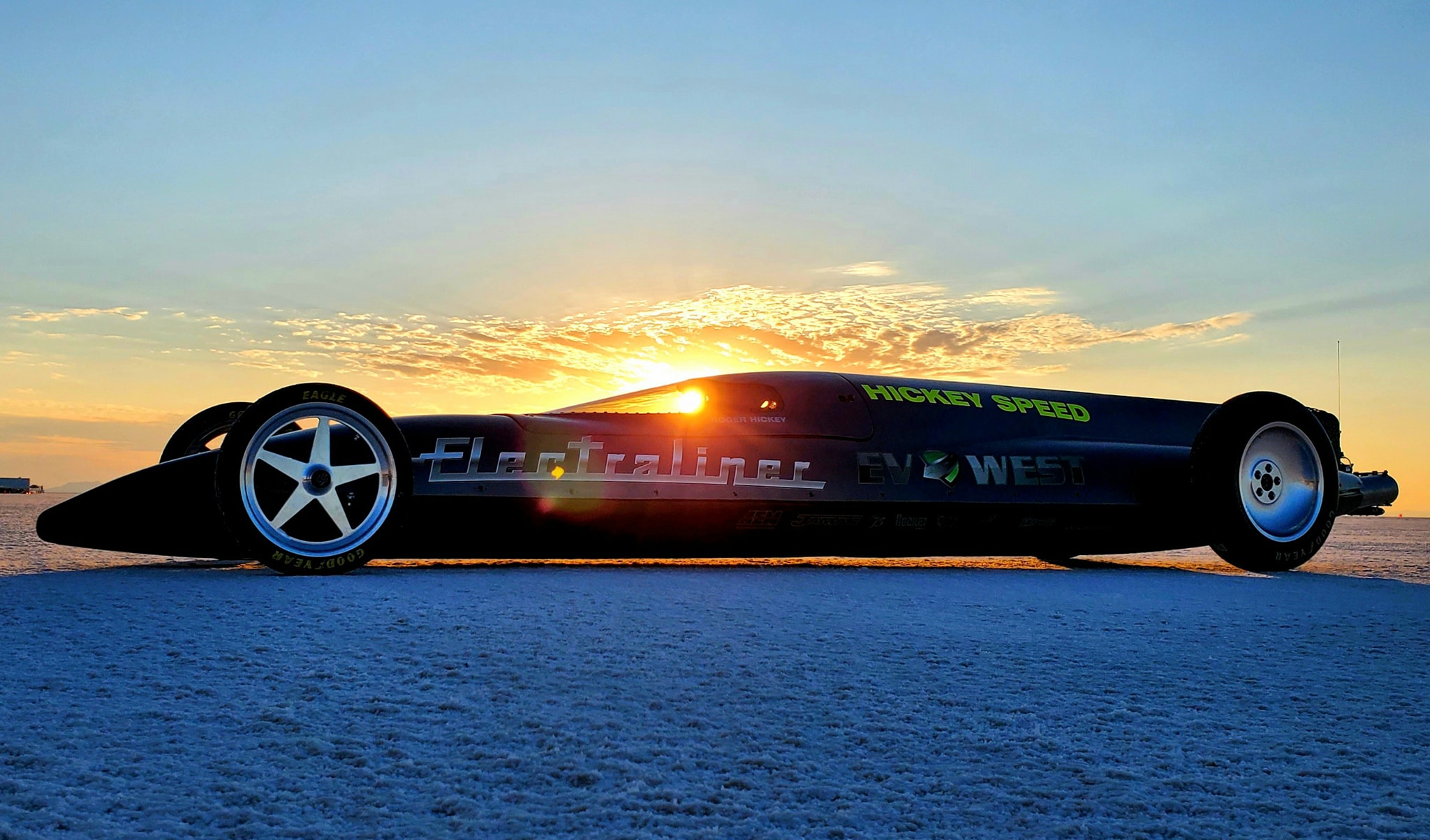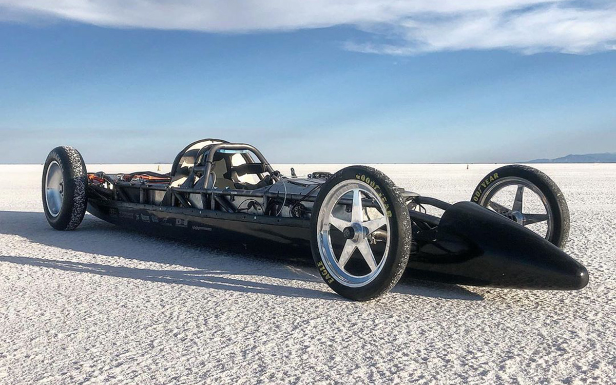 Електричний болід Electraliner із моторами Tesla встановив два рекорди швидкості протягом дня. Під час першого заїзду електрокар, пілотований гонщиком Джимом Гугергайдом, зміг розвинути середню швидкість в 351,15 км/год, а під час другого – 369,1 км/год. При цьому максимальна швидкість електрокара досягала 386 км/год.