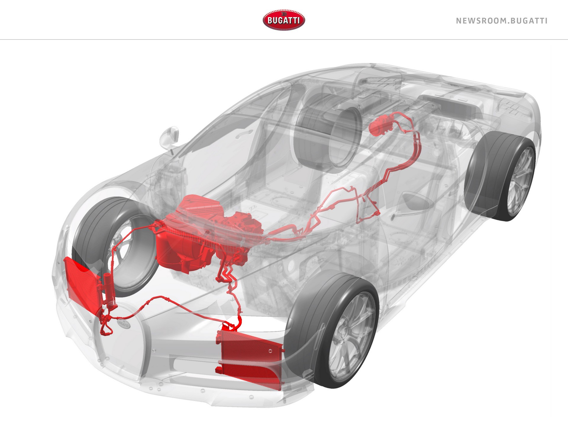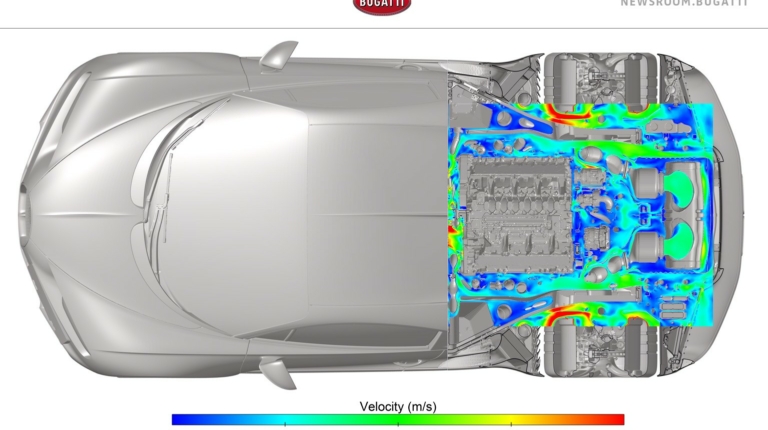 Як пояснила інженер Bugatti Джулія Лемке, така потужність зумовлена кількома чинниками, серед яких і висока швидкість. Адже у звичайних авто потік повітря подається в нижню частину вітрового скла, а в Chiron це відбувається тільки на швидкості до 250 км/год. Після цього відбувається перемикання на негативний тиск і кондиціонування припиняється. Саме тому компанії довелося розробити складну схему з додатковою заслінкою й оптимізованої повітродувкою.