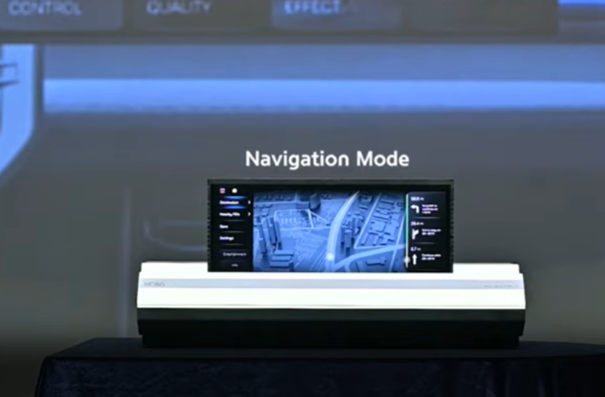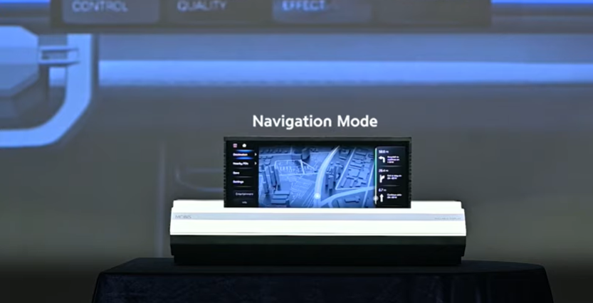 Особливість цього екрану полягає в тому, що він дуже гнучкий і його через непотрібність можна згорнути і сховати в панелі приладів. Також його можна відкривати частково, розгортаючи на потрібну ширину. Це дозволить водієві концентрувати увагу лише на потрібній інформації, а всі відволікаючі фактори звести до мінімуму.