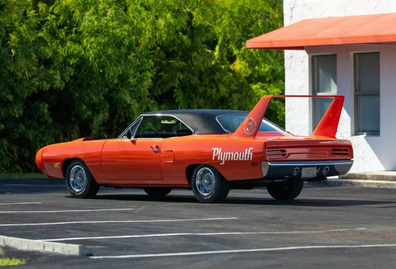 Plymouth Superbird 1970 випуску з порядковим номером «200» виставили на аукціон Mecum. Маслкар знаходиться у відмінному стані і пофарбований у фірмовий відтінок High Impact EV2 TorRed. Він і досі яскравий, незважаючи на солідний вік. Кузов ідеально поєднується з чорним вініловим верхом та 15-дюймовими колесами Rallye, взутими у шини Goodyear F60-15 Polyglas GT.