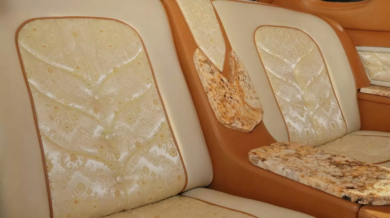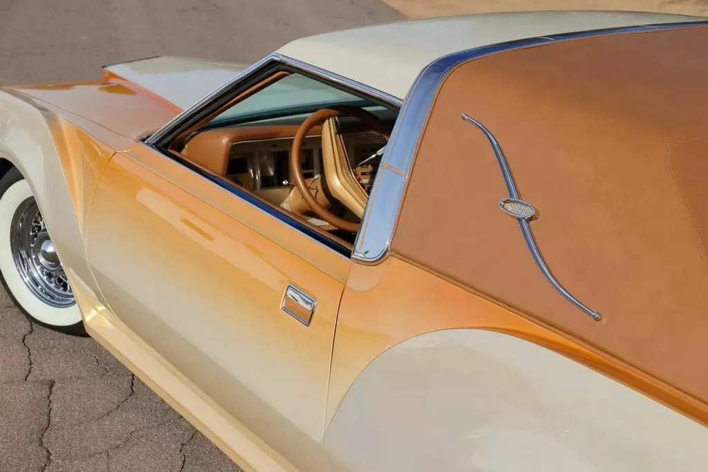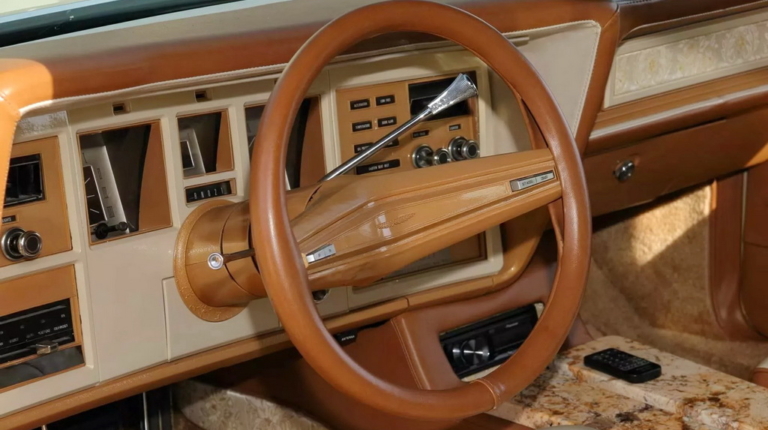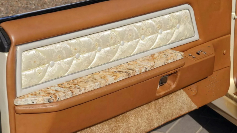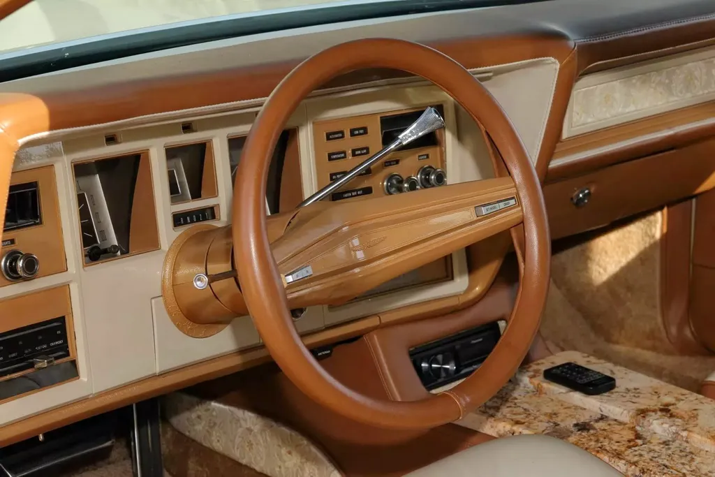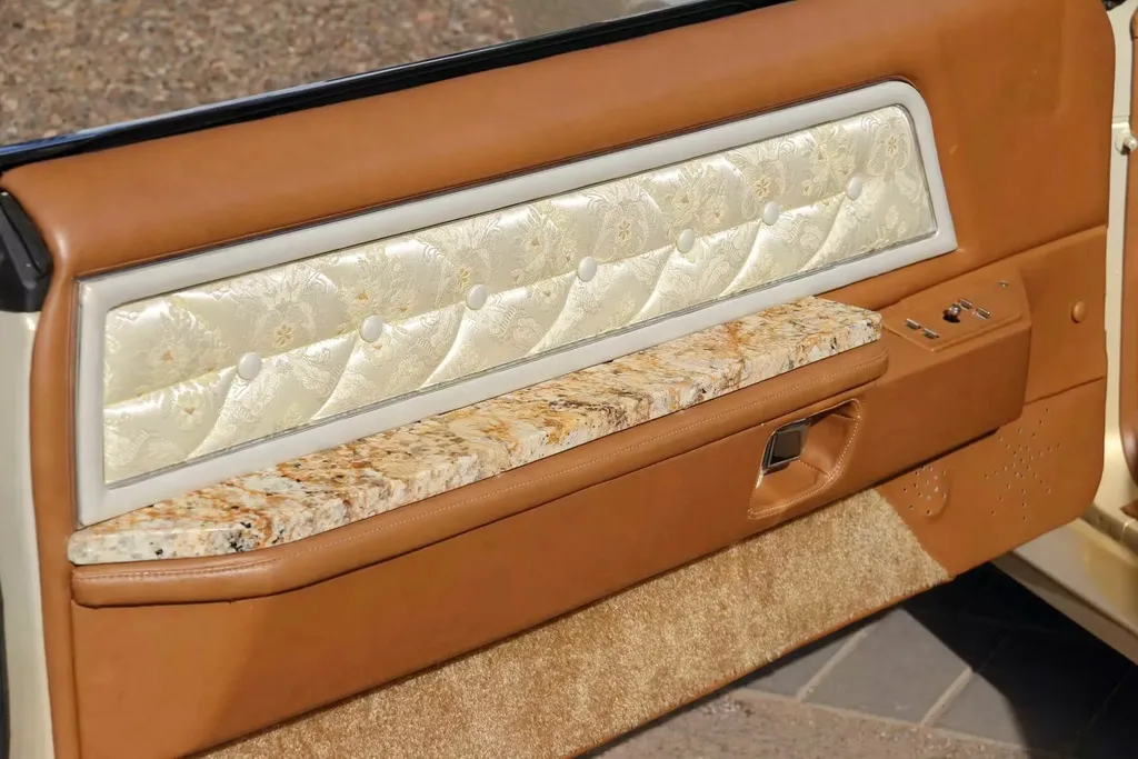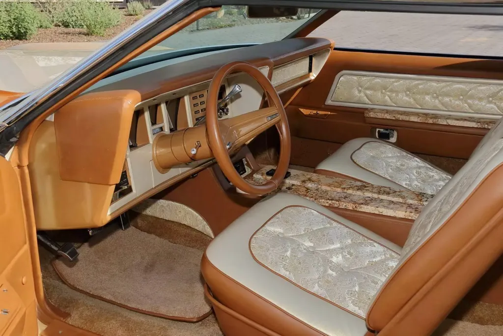 На спеціалізованому аукціоні Mecum виставили оригінальний кастом-кар Lincoln Mark IV Bugazzi 70-х років. Автомобіль приваблює ефектним виглядом та унікальним оздобленням салону з граніту.