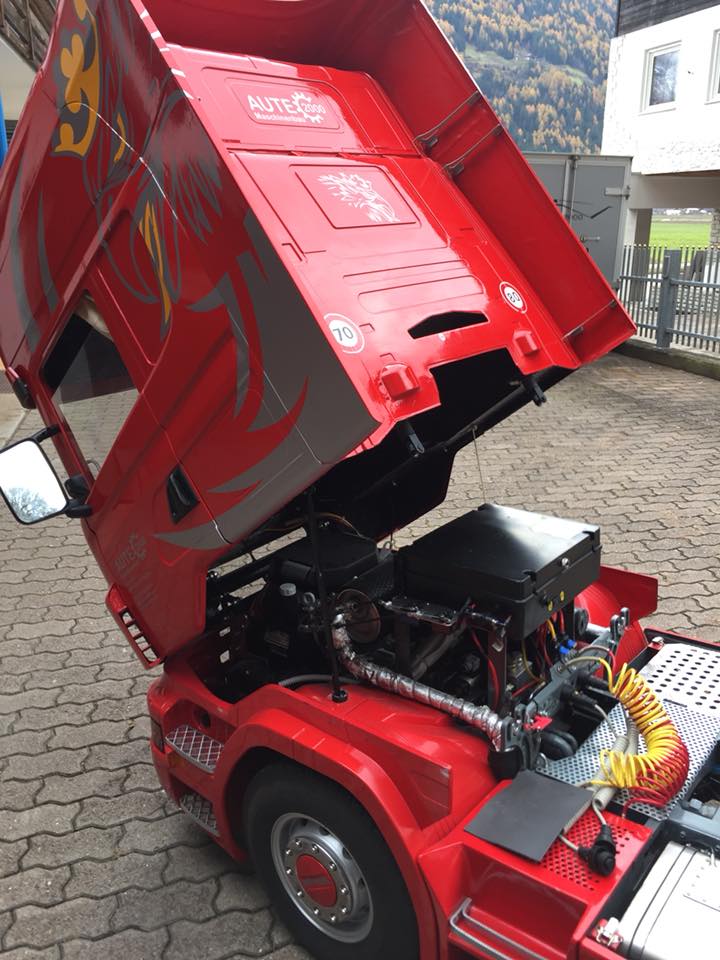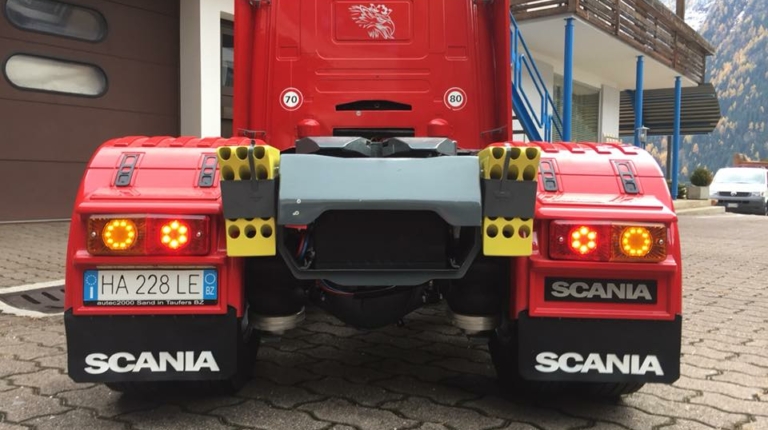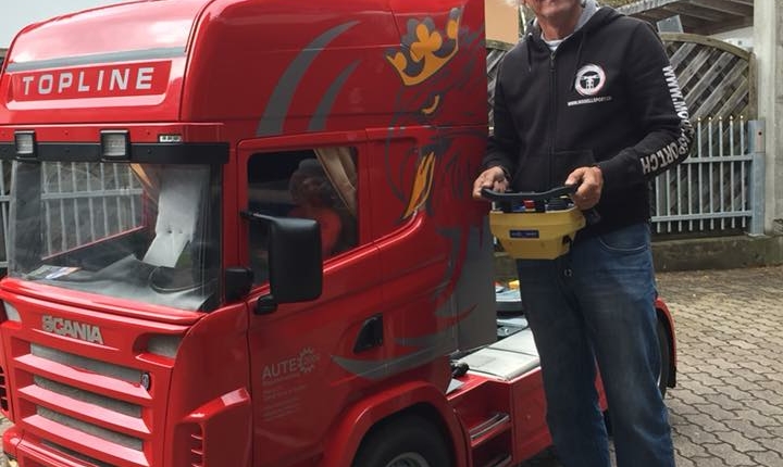 Однако после аварии одного из своих летающих творений, он решил переключится на колесный транспорт. Его выбор – упрощенная версия седельного тягача Scania R 500 Topline. Для воплощения своей идеи в жизнь о нашел партнера – Германа Аюре, профессионального разработчика моделей, живущего в Южном Тироле.