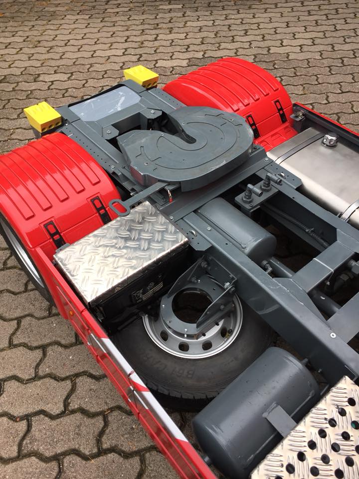 Масштабная модель Scania R 500 Topline помимо всего прочего получила миниатюрный двигатель внутреннего сгорания и дистанционное управление. Более того, здесь есть регулируемая пневмоподвеска – все как в настоящем тягаче.