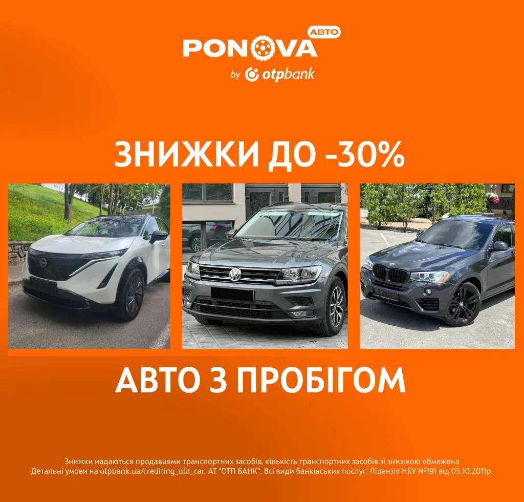 «Бажаєте придбати якісне авто за доступною ціною? На Ponova by OTP Bank більш ніж 28,5 тисяч машин із пробігом продаються зі знижкою до ‒30%. Безпечний кросовер чи позашляховик для їзди по бездоріжжю, сімейний мінівен, компактне авто для економічного й комфортного пересування містом або мотоцикл - ми подбали про те, щоб покупці мали не тільки широкий вибір, а ще й «гарячі» пропозиції», — зазначив М.Алфьоров.