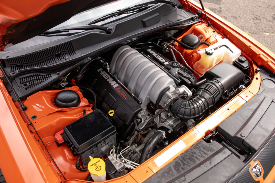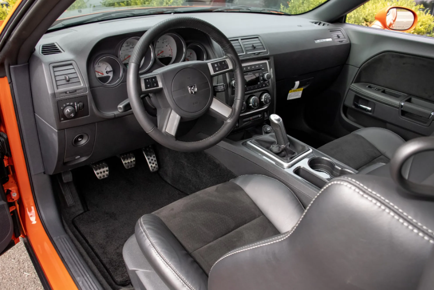 У лістингу зазначено, що цей Dodge Challenger SRT8 регулярно проходив ТО. Остання заміна олії була зроблена власником у вересні 2024 року. А 6,1-літровий двигун SRT Hemi V8 двигун заводили раз на пару тижнів, щоб зберегти його повну працездатність. Цей мотор пов’язаний з шестиступінчастою механічною коробкою передач. Ще на авто встановлені оригінальні 20-дюймові ковані алюмінієві диски SRT Design і гальма Brembo.