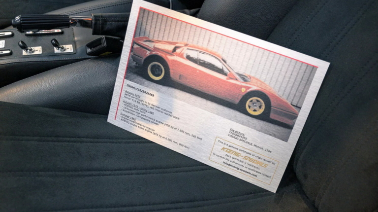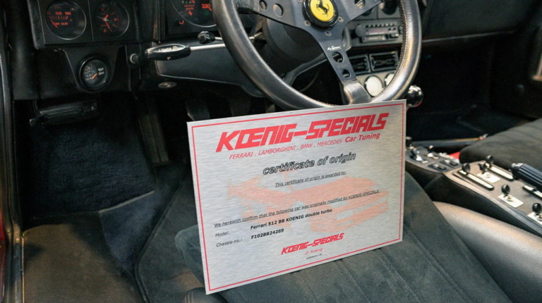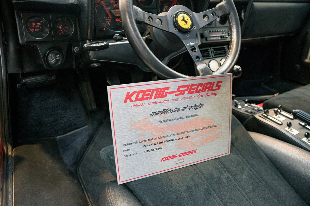 Цей класичний суперкар починав своє життя як Ferrari 512 Berlinetta Boxer 1978 року, але вже через рік після покупки власник відправив його до ганноверської майстерні Koening Specials, де команда Віллі Кеніга зайнялася його доопрацюванням. Автомобіль отримав розширений кузов, стильні диски Campagnolo, модернізовану підвіску та форсований двигун.