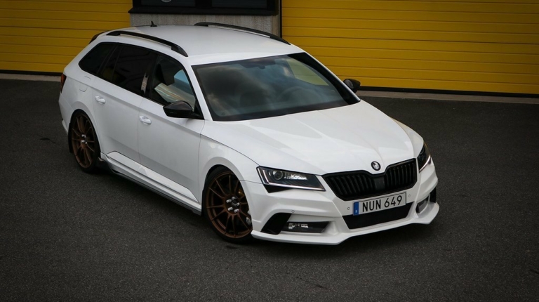 Superb Combi 2016 года выпуска дополнили спортивным обвесом из карбона, крышками боковых зеркал из того же материала, 20-дюймовыми керамическими дисками бронзового цвета и шинами Hankook Ventus S1 Evo3 размером 235/35. Также автомобиль получил более мощные тормоза. Салон отделали кожей и алькантарой, которые дополняют вставки из углеродного волокна.