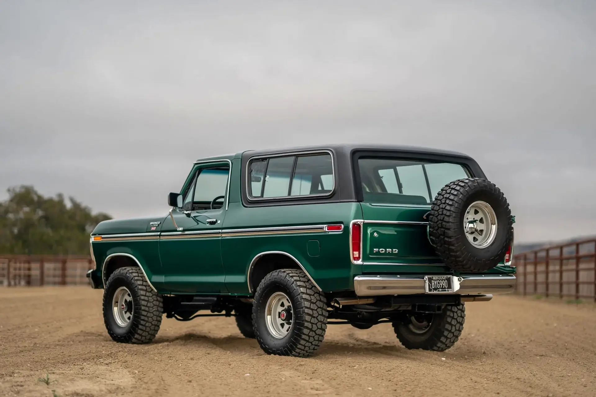 Bronco Ranger XLT 1979 року випуску перебуває в ідеальному стані. А все тому, що він був повністю відреставрований в 2020 році. Його кузов пофарбований у відтінок Dark Jade Metallic, який прекрасно поєднується з чорним знімним дахом і аналогічного кольору 15-дюймовими колесами, взутими в шини BFGoodrich Mud-Terrain T/A. На кормі на відкидному тримачі закріплена відповідна запаска.
