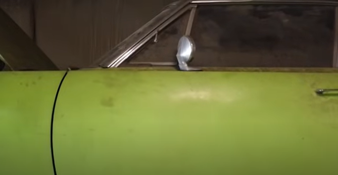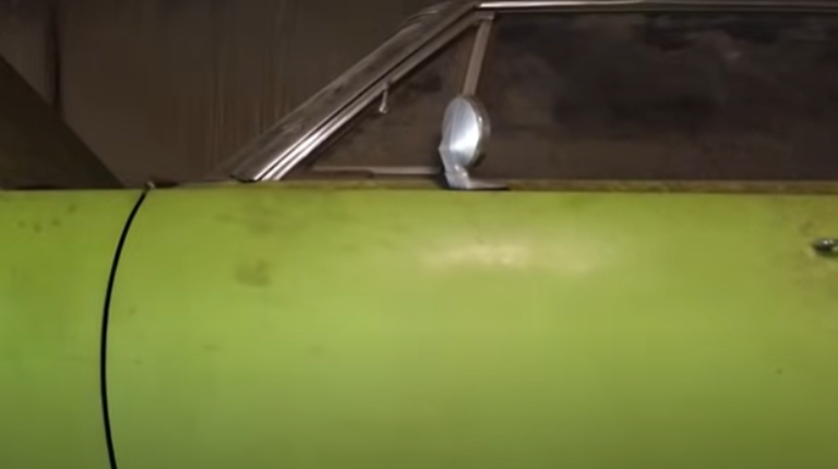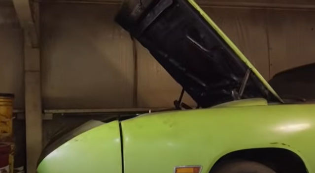 За роки простою яскраво-зелений кузов колекційного спорткара запилився і місцями вкрився іржею. Салон також виглядає непрезентабельно. При цьому авто знаходиться у повністю оригінальній комплектації, тому не втратило своєї цінності.